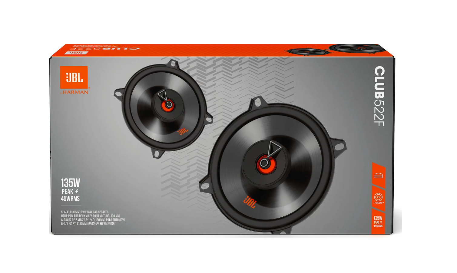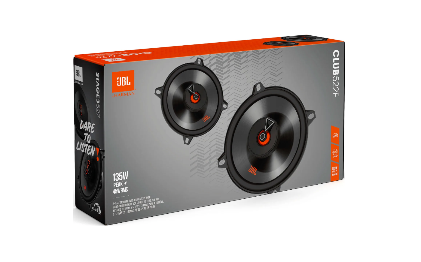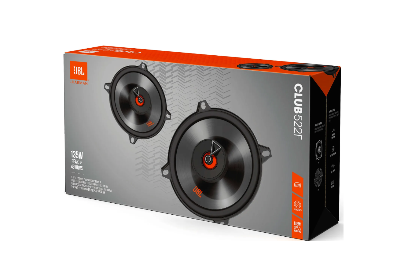 Говорителите JBL Club 522F представляват достъпен и ефективен ъпгрейд на заводското озвучаване, който предлага по-чист, по-динамичен и по-детайлен звук. Тези 5,25\" (130 mm) двулентови коаксиални говорители са проектирани да се впишат лесно в повечето автомобили и в същото време да осигурят значително по-добра производителност дори при захранване от обикновено автомобилно радио. Благодарение на високата чувствителност те предоставят по-силен и по-жив звук без необходимост от външен усилвател.