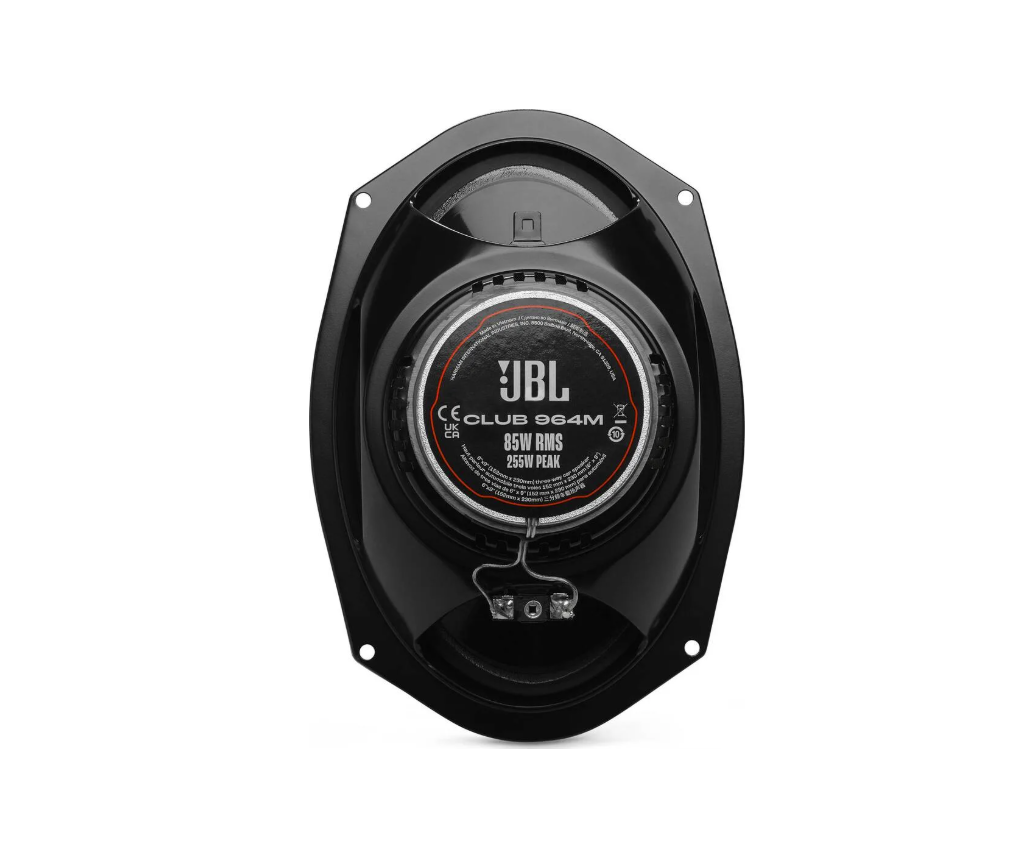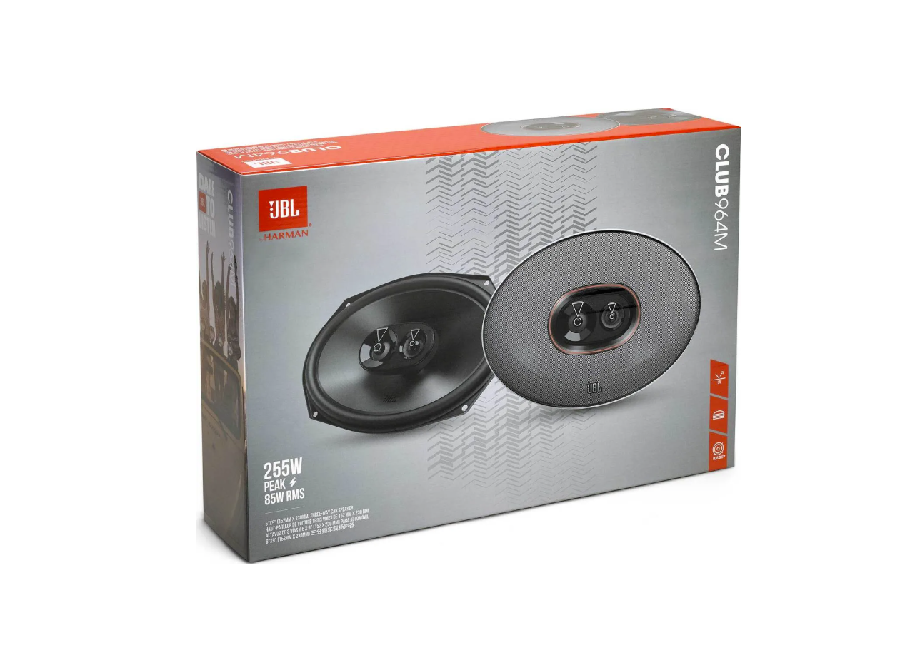 Говорителите JBL Club 964M са мощни 6×9" (152 × 230 mm) трилентови коаксиални високоговорители, които представляват идеален ъпгрейд за автомобили с по-големи монтажни позиции. Благодарение на комбинацията от усъвършенствани технологии JBL и висока чувствителност те предлагат значително по-добра динамика, по-дълбоки басове и по-детайлен звук в сравнение с фабричното озвучаване, дори при захранване от стандартно авторадио.