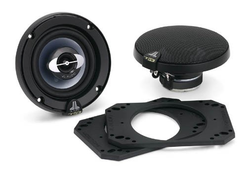| Тип на високоговорителитеКоаксиални високоговорители: Коаксиалните високоговорители се характеризират с конструкция, наречена всичко в едно. Високочестотният и среднобасовият говорител са в един и същ кош. Предимството е по-лесен монтаж, но поради свързването или близостта на честотните диапазони в един говорител обикновено се понижава качеството на звука. Обикновено в центъра на среднобасовия говорител се намира високочестотният говорител, чиито звукова бобина работи във втората въздушна междина на общия магнитен кръг. Коаксиален говорител с три честотни диапазона се състои от среднобасов говорител, отпред на специален носач е поставен средночестотният говорител и отделен високочестотен. Компонентни високоговорители: Компонентните високоговорители се отличават с разделянето на отделни честотни диапазони: високочестотен + среднобасов + евентуално басов диапазон. Отделните говорители могат да бъдат разположени напълно отделно, което води до по-добро звуково и акустично представяне. В огромното мнозинство от случаите при компонентните високоговорители се доставя и външна кросоувърна мрежа, която разделя високите, средните/среднобасовите и при системи с три честотни диапазона и басовите честоти, както и позволява настройване на нивото в децибели на високочестотния говорител (напр. +2 dB, 0 dB, -2 dB), стръмността (напр. 6 dB/октава, 12 dB/октава) или активно/bi-amp свързване. | коаксиални 2-пътни |