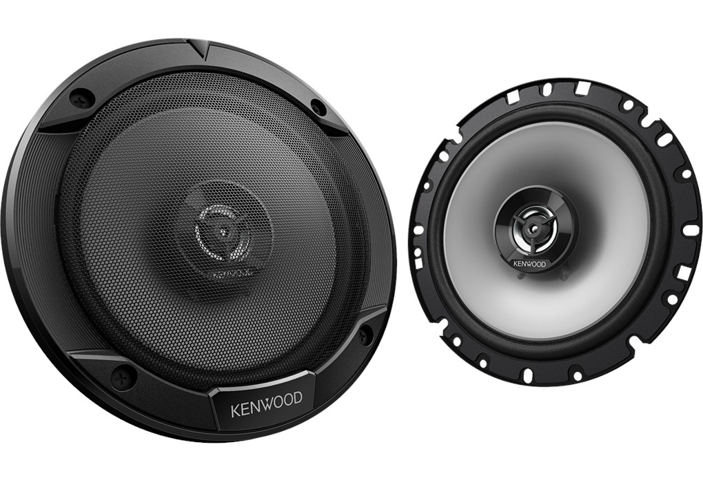 | Тип на високоговорителитеКоаксиални високоговорители: Коаксиалните високоговорители се характеризират с конструкция, наречена всичко в едно. Високочестотният и среднобасовият говорител са в един и същ кош. Предимството е по-лесен монтаж, но поради свързването или близостта на честотните диапазони в един говорител обикновено се понижава качеството на звука. Обикновено в центъра на среднобасовия говорител се намира високочестотният говорител, чиито звукова бобина работи във втората въздушна междина на общия магнитен кръг. Коаксиален говорител с три честотни диапазона се състои от среднобасов говорител, отпред на специален носач е поставен средночестотният говорител и отделен високочестотен. Компонентни високоговорители: Компонентните високоговорители се отличават с разделянето на отделни честотни диапазони: високочестотен + среднобасов + евентуално басов диапазон. Отделните говорители могат да бъдат разположени напълно отделно, което води до по-добро звуково и акустично представяне. В огромното мнозинство от случаите при компонентните високоговорители се доставя и външна кросоувърна мрежа, която разделя високите, средните/среднобасовите и при системи с три честотни диапазона и басовите честоти, както и позволява настройване на нивото в децибели на високочестотния говорител (напр. +2 dB, 0 dB, -2 dB), стръмността (напр. 6 dB/октава, 12 dB/октава) или активно/bi-amp свързване. | Коаксиален 2-пътен |