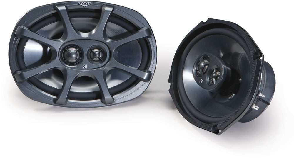 | Тип на високоговорителитеКоаксиални високоговорители: Коаксиалните високоговорители се характеризират с конструкция, наречена всичко в едно. Високочестотният и среднобасовият говорител са в един и същ кош. Предимството е по-лесен монтаж, но поради свързването или близостта на честотните диапазони в един говорител обикновено се понижава качеството на звука. Обикновено в центъра на среднобасовия говорител се намира високочестотният говорител, чиито звукова бобина работи във втората въздушна междина на общия магнитен кръг. Коаксиален говорител с три честотни диапазона се състои от среднобасов говорител, отпред на специален носач е поставен средночестотният говорител и отделен високочестотен. Компонентни високоговорители: Компонентните високоговорители се отличават с разделянето на отделни честотни диапазони: високочестотен + среднобасов + евентуално басов диапазон. Отделните говорители могат да бъдат разположени напълно отделно, което води до по-добро звуково и акустично представяне. В огромното мнозинство от случаите при компонентните високоговорители се доставя и външна кросоувърна мрежа, която разделя високите, средните/среднобасовите и при системи с три честотни диапазона и басовите честоти, както и позволява настройване на нивото в децибели на високочестотния говорител (напр. +2 dB, 0 dB, -2 dB), стръмността (напр. 6 dB/октава, 12 dB/октава) или активно/bi-amp свързване. | коаксиални трилентови |