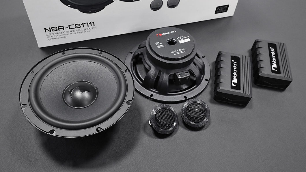 Серията компонентни говорители NSA се отличава преди всичко с напреднал и естествен звук, пълен с детайли. Средночестотният говорител, изработен от композитна хартия, осигурява оптимален баланс между лекота, издръжливост и стабилност. Хартията, която разбира се е обработена с водоустойчиво покритие, все още се счита за един от най-подходящите материали за високо качество на звука и това се отразява и в звученето на говорителите Nakamichi. Гумираното окачване на мембраната гарантира издръжливост през много години. Високочестотните говорители, изработени от коприна, позволяват детайлен и натурален звук с характерната лекота и финес. Нивото им може да се регулира на кросоувъра за оптимално адаптиране към приоритетите на слушателя. Впечатлява и здравото и сигурно опаковане, както и богатото аксесоарно съдържание, включително възможността за избор между два цвята решетка на високочестотния говорител. Указаната чувствителност 88 dB не е най-високата, но според нашите тестове реално е по-висока и говорителите звучат много добре дори с фабричното автомобилно радио. Когато към горното добавим и перфектната изработка, това без съмнение е нашият избор за говорители в ценовия клас до 3 хиляди Kč.