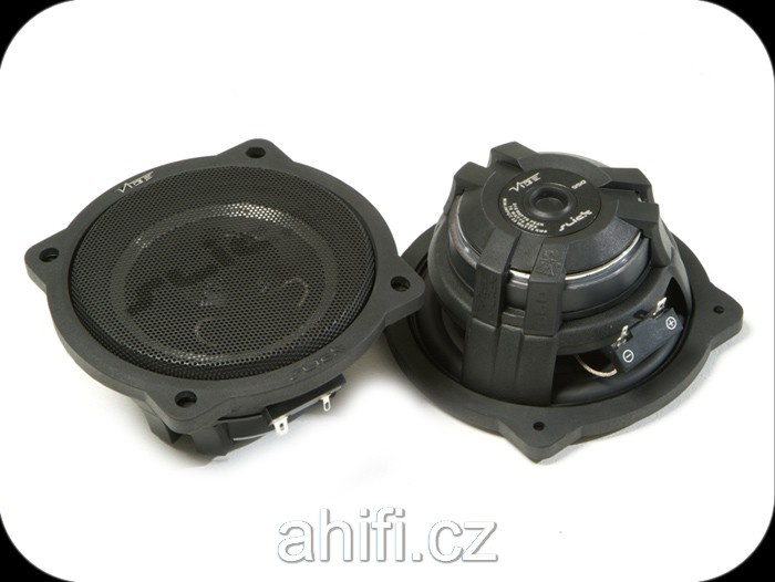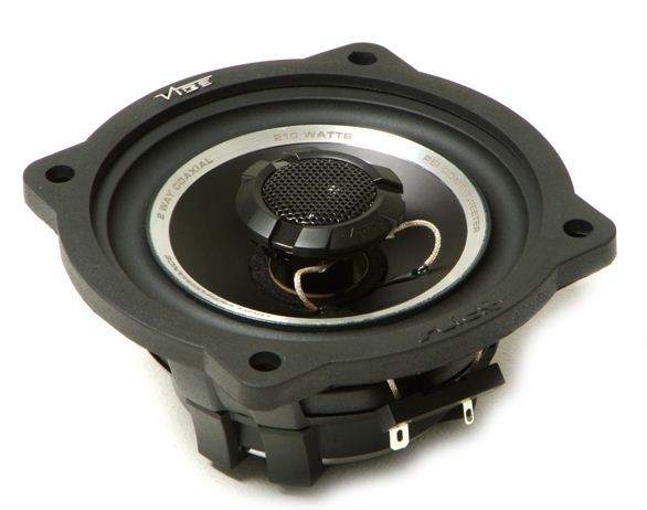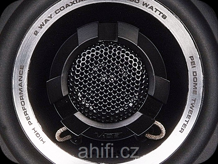 | Тип на високоговорителитеКоаксиални високоговорители: Коаксиалните високоговорители се характеризират с конструкция, наречена всичко в едно. Високочестотният и среднобасовият говорител са в един и същ кош. Предимството е по-лесен монтаж, но поради свързването или близостта на честотните диапазони в един говорител обикновено се понижава качеството на звука. Обикновено в центъра на среднобасовия говорител се намира високочестотният говорител, чиито звукова бобина работи във втората въздушна междина на общия магнитен кръг. Коаксиален говорител с три честотни диапазона се състои от среднобасов говорител, отпред на специален носач е поставен средночестотният говорител и отделен високочестотен. Компонентни високоговорители: Компонентните високоговорители се отличават с разделянето на отделни честотни диапазони: високочестотен + среднобасов + евентуално басов диапазон. Отделните говорители могат да бъдат разположени напълно отделно, което води до по-добро звуково и акустично представяне. В огромното мнозинство от случаите при компонентните високоговорители се доставя и външна кросоувърна мрежа, която разделя високите, средните/среднобасовите и при системи с три честотни диапазона и басовите честоти, както и позволява настройване на нивото в децибели на високочестотния говорител (напр. +2 dB, 0 dB, -2 dB), стръмността (напр. 6 dB/октава, 12 dB/октава) или активно/bi-amp свързване. | коаксиални двулентови |