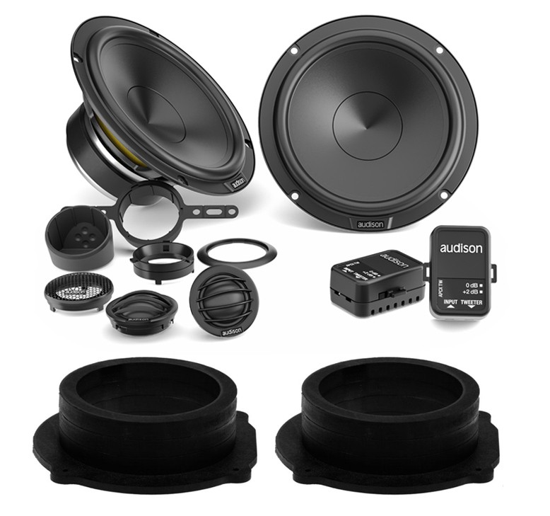 Високоговорители, предназначени за подобряване на озвучаването на автомобила Audi Q7 4M от производствената година 2015 до 2023. Този комплект високоговорители се характеризира с качествен звук, изработка и лесен монтаж без необходимост от намеса в интериора или електрическата инсталация на автомобила. В състава на този комплект влизат следните продукти:- Компонентни високоговорители Audison APK 165P за предни врати.