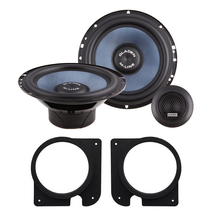 Високоговорители, предназначени за подобряване на съществуващата аудиосистема на Volkswagen Golf III. Този комплект се отличава с качествен звук, изработка и лесен монтаж без необходимост от промени в интериора на автомобила. Част от този комплект са следните продукти:- Компонентни високоговорители Gladen M 165 G2 за предните врати.