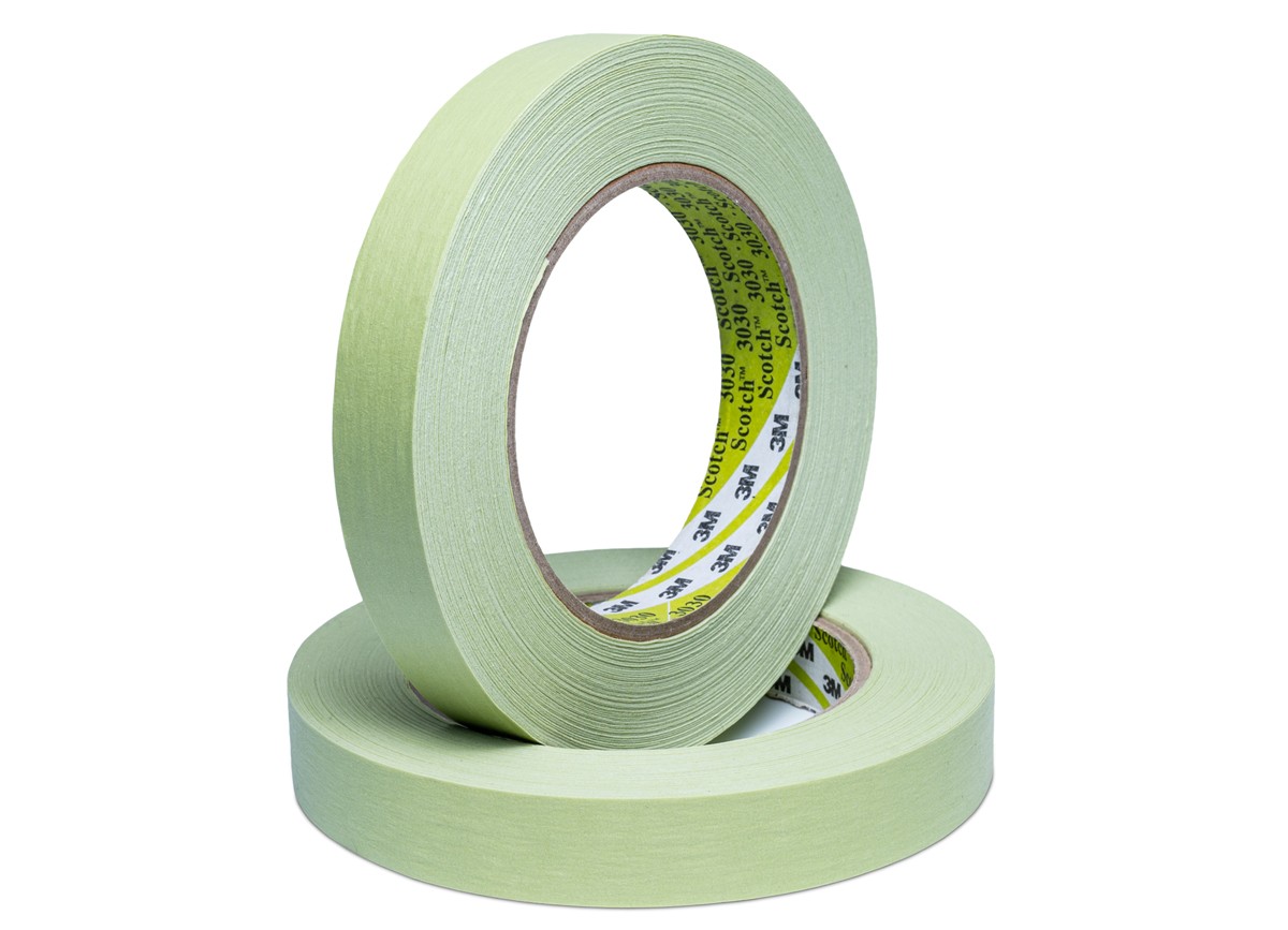 Професионална маскираща лента 3M за използване в автосервизи за боядисване и професионални центрове за полиране и детайлинг. Лентата е самозалепваща с ярко зелено оцветяване, което ясно отделя незакритите повърхности от покритите. След отлепване не остава лепилен остатък и при свалянето няма опасност от отлепване на боята. С маскиращата лента за каросерийни работи 3M Scotch Premium 3030 ще постигнете чисти линии. Тази зелена покривна лента с фино крепирана повърхност е снабдена със специално лепило с кръстосана връзка гума/смола и е подходяща за различни работи в автосервизи.