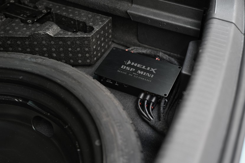 В тази публикация ще представим инсталацията на нова озвучителна система в автомобил Volkswagen Golf 7 R. Този модел е един от най-популярните спортни хечбекове и благодарение на отличните си динамични характеристики и мощност предлага превъзходно удоволствие от шофирането. За да бъде преживяването перфектно и от музикална гледна точка, собственикът ни потърси за монтаж на нов аудио система. Тя включваше подмяна на фабричните говорители с висококачествени компоненти на италианския производител ESB, насочени не само към високо качество на звука, но и към сериозна мощност в духа на този спортен автомобил. Не липсваше мощен субуфер от същия производител, който заедно с говорителите свързахме към 5-канален усилвател JL Audio. Подробното адаптиране на звука както към слушателя, така и към конкретния автомобил бе възможно благодарение на DSP процесор Helix. Цялата инсталация бе извършена с максимално внимание да се запази оригиналният вид на интериора, който бе нарушен само от наличието на субуфера в багажното отделение. Крайният резултат е чист, детайлен звук с твърда басова основа, който издига слушането на музика в Golf R на съвсем ново ниво.