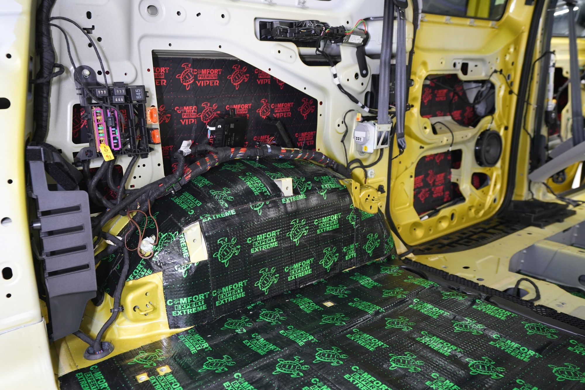 Пълна шумоизолация и нова озвучителна система за електрическия стилен модел Volkswagen ID. Buzz. Това модерно Bulli привлича главно с модерния и непретенциозен ретро дизайн, който наистина е успешен. Препратката към оригиналното "Téčko" е ясно разпознаваема и по пътя няма да остане незабелязана. За заводската звукова изолация или фабричната звукова система едва ли трябва да се разпростираме — тук всичко е вече добре известно. Практически голите ламарини водят до лесно проникване на шума в интериора и заводската озвучителна система вероятно ще удовлетвори само нечуващия. Най-големи проблеми традиционно предизвикват гумите и долната част на автомобила като цяло и именно на тези области се фокусираме старателно в нашия подобрен пакет за шумоизолация Expert Plus. Конкретно шумоизолираме предните, страничните и петите врати, пода, покрива, предните и задните калници, таблото и капака. Всички важни зони на автомобила са шумоизолирани с модерни двуслойни материали с повишена дебелина и ефективност. Резултатът е значително повишен акустичен комфорт, както и цялостна подготовка за новата аудио система. За озвучаването избрахме средночестотни и високочестотни говорители Morel, които допълнихме със средобасите на италианския производител ESB Audio. Трисистемната конфигурация се захранва от 6-канален усилвател Helix за солиден звук, интегриран DSP процесор с първокласен софтуер и не на последно място компактни размери, благодарение на които го скрихме заедно с втория усилвател за субуфера в страничната панела на задната част на автомобила. Субуферът JL Audio в малка кутия успяхме умно да поставим в пода и така той не заема място в интериора. Накрая традиционно измерване на звука с калибриран микрофон, което позволява след професионално настройване да се адаптира звукът не само към слушателя, но и преди всичко към този конкретен автомобил с всички препятствия на тази за звука несъвършена среда. Измерените резултати се задават в софтуера на DSP процесора Helix, звукът се детайлно донастройва според нашите предпочитания и след това следва финална корекция с клиента. Резултатът е прецизно настроен звук, който ще удовлетвори дори претенциозните слушатели.Показване на продуктиСкриване на продукти