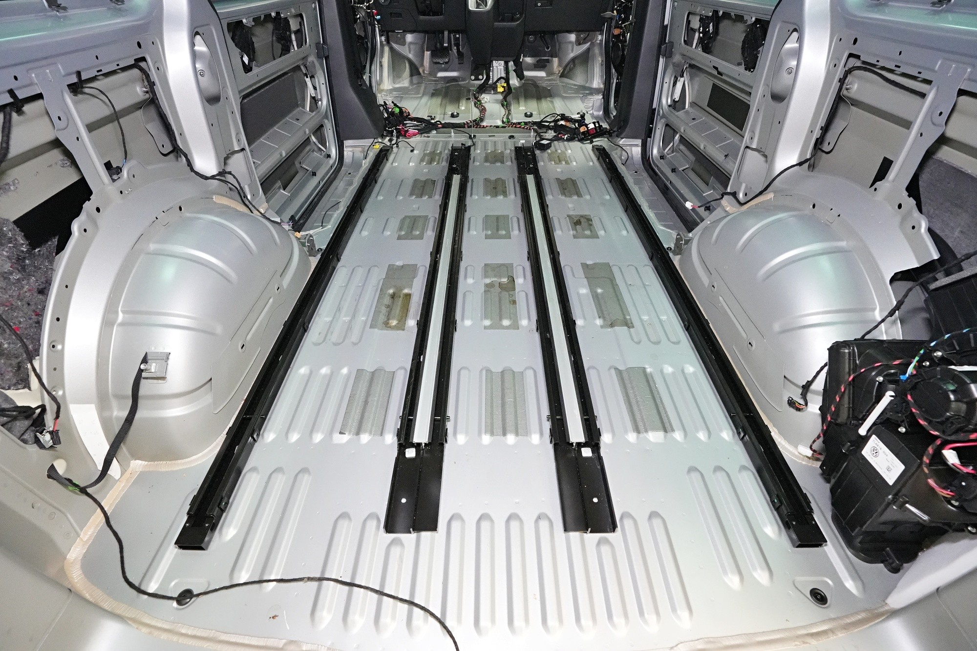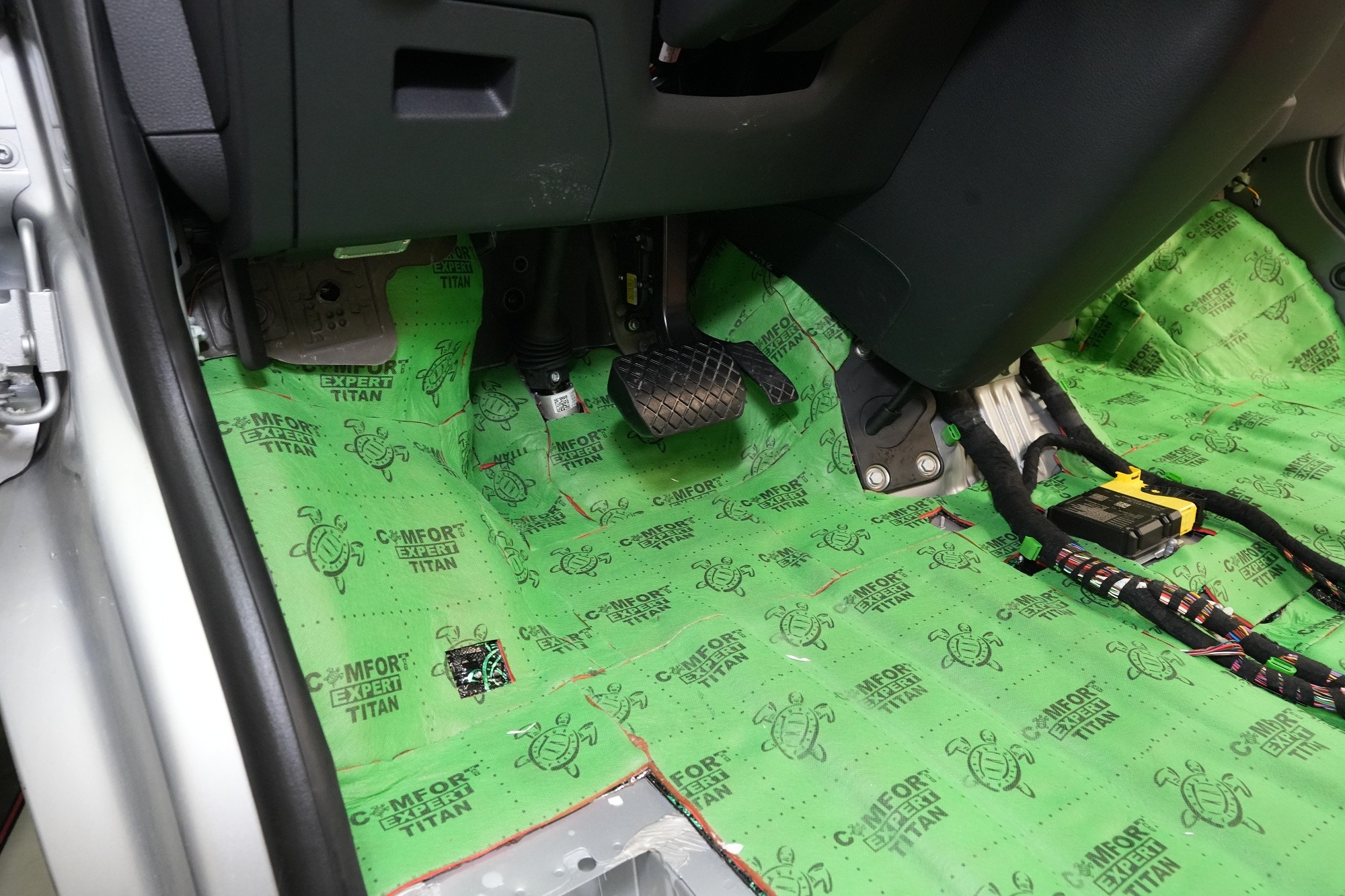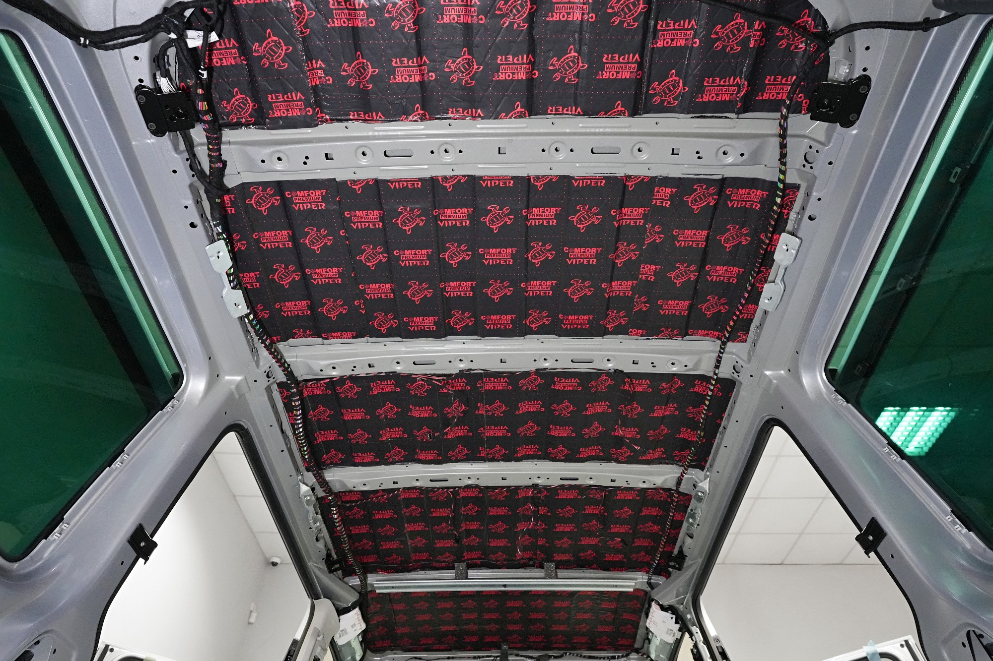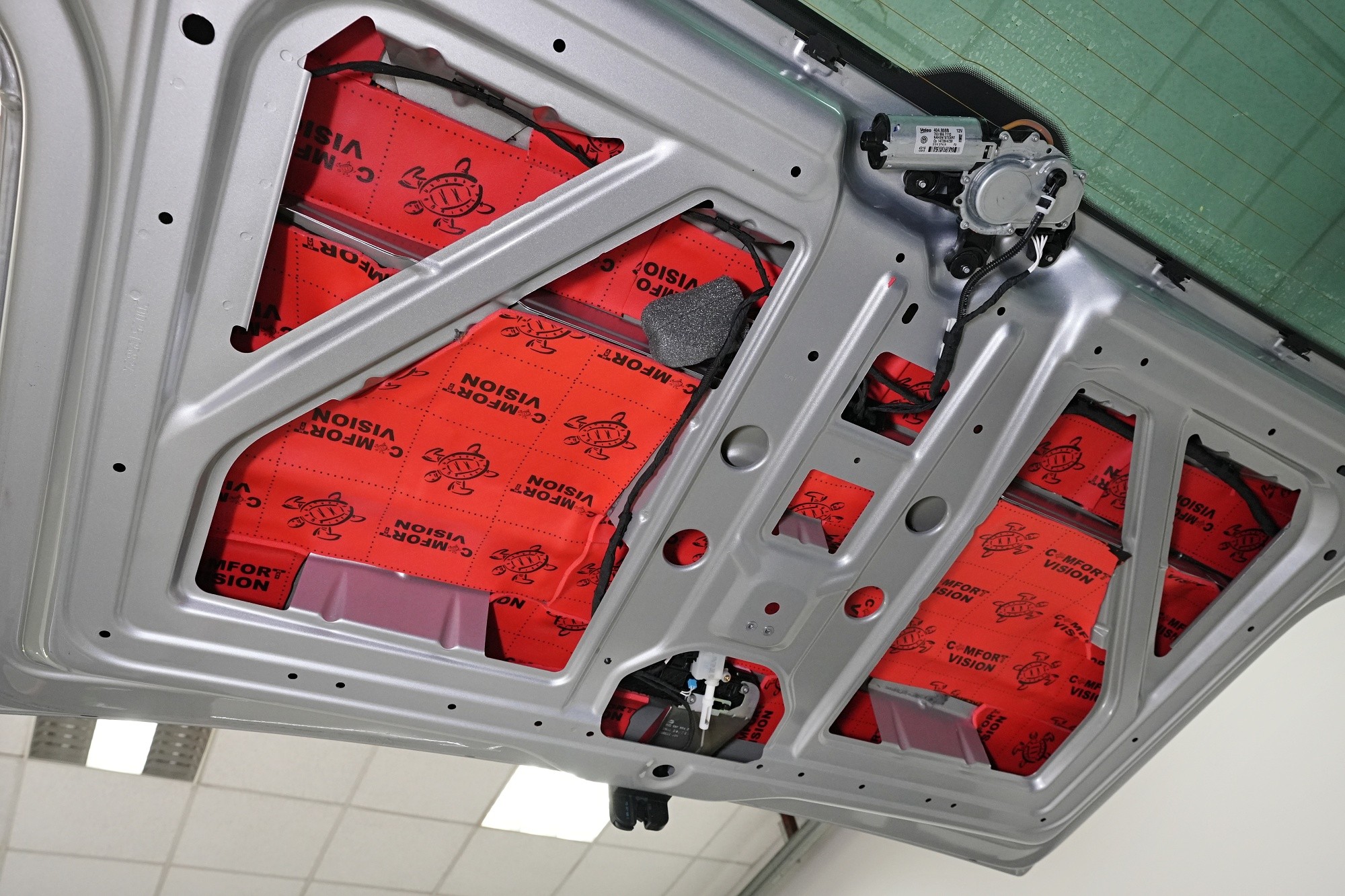 Пълна шумоизолация на автомобил Volkswagen T6. Този популярен MPV във всички поколения е, след V-класата на Mercedes, най-често шумоизолираният автомобил в нашия сервиз. И двата модела имат едно общо нещо – практически нулева фабрична изолация. Поради конструкцията на автомобила не може да се очаква нищо друго, освен много изразен шум в интериора. Най-големият проблем е аеродинамичният шум, шумът от гуми и пътя, както и шумът от двигателя, скоростната кутия и окачването на колелата. Единственото решение е автомобилът да бъде шумоизолиран изцяло. Заедно със собственика избрахме нашия най-ефективен пакет шумоизолация Expert Plus, който включва всички важни зони на автомобила. Конкретно се насочихме към предни, плъзгащи и пета врата, пода, покрива, страни, предни и задни подкалници, торпедо и капак. Шумоизолираме, разбира се, и повечето пластмасови части в интериора. При пакета Expert Plus избираме, в сравнение с класическия пакет Expert, по-ефективни и по-дебели материали и автомобилът е шумоизиран до възможния максимум. При такъв голям автомобил цената е увеличена спрямо обичайните автомобили, защото прекарахме повече време на автомобила и използвахме по-голям брой парчета материали. За шумоизолацията работят едновременно трима наши техници и монтажът се справят в рамките на 1 работен ден. Тъй като всички материали Comfortmat са и топлоизолационни, този автомобил вече е защитен от топлинни загуби и топлоизолационните свойства ще оцените не само през зимата, но и през лятото.