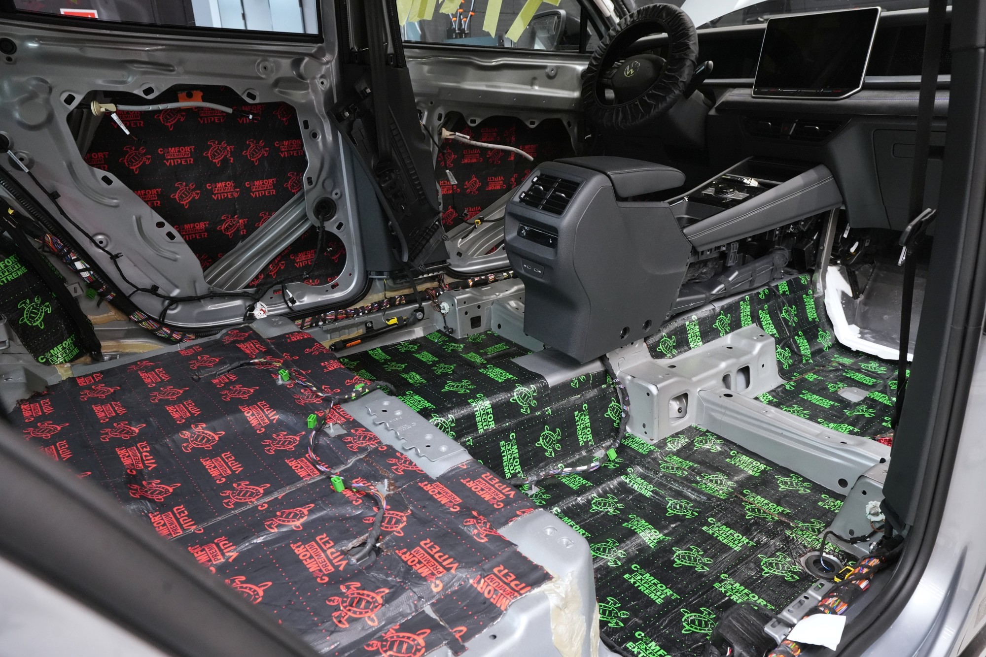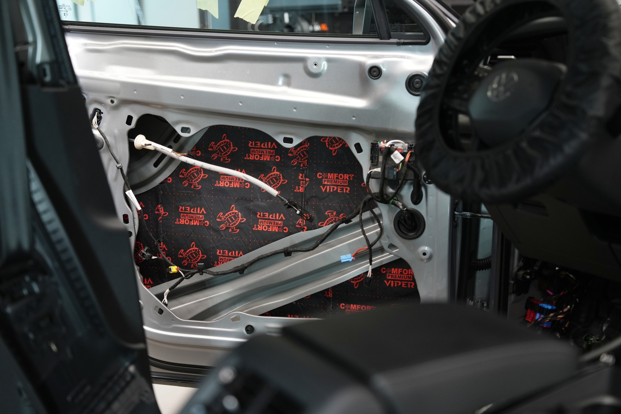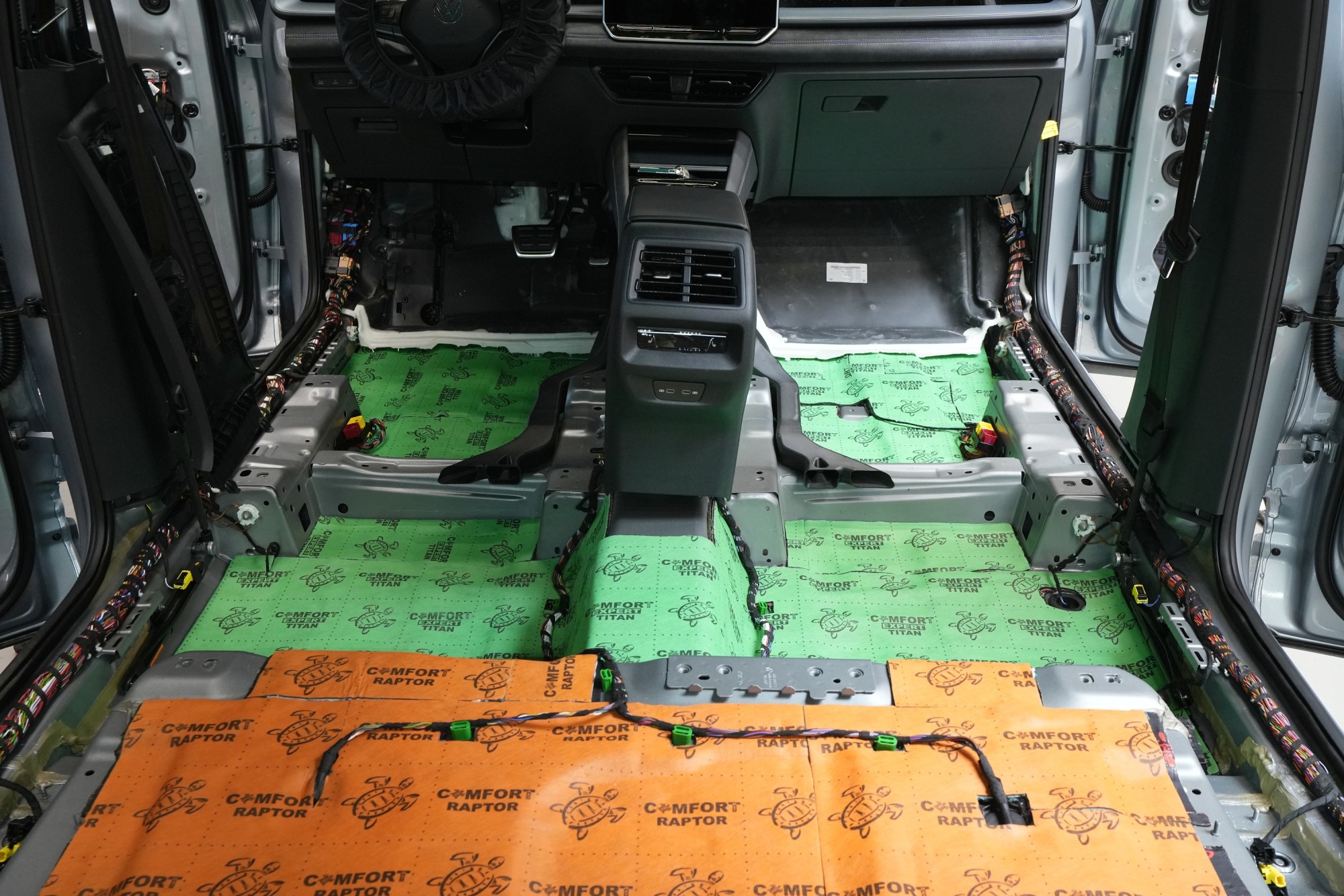 Самата инсталация протече в един работен ден и в проекта участва нашият опитен екип от четирима. Резултатът е осезаемо по-тих и по-култивиран интериор, в който изпъква премиалният характер на автомобила и комфортът при дълги пътувания. Според нашите измервания тази спецификация осигурява средно намаление на шума с 3,5 до 4 dB, което съответства на повече от двукратно заглушаване в сравнение със серийното състояние. Разликата е видима не само на магистралата, но и в градския трафик, където Tayron изглежда значително по-комфортен и луксозен.Показване на продуктиСкриване на продукти