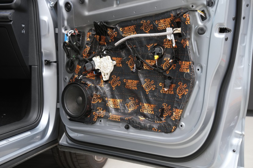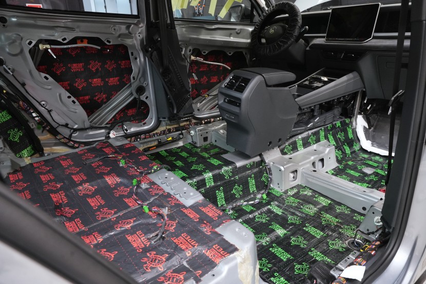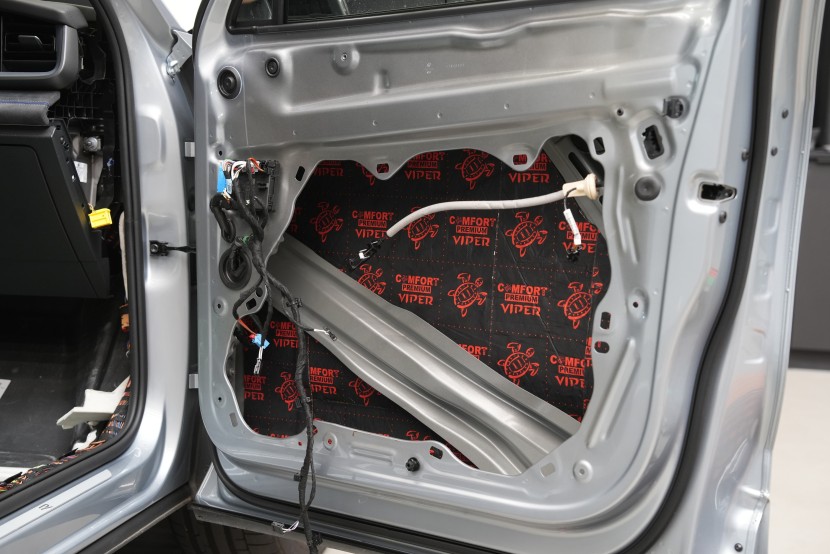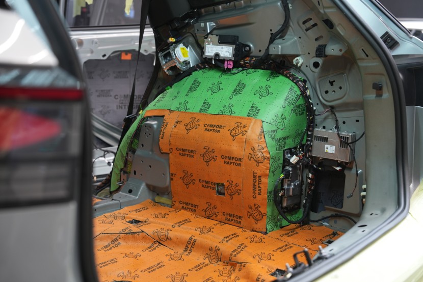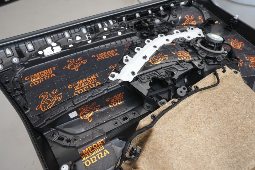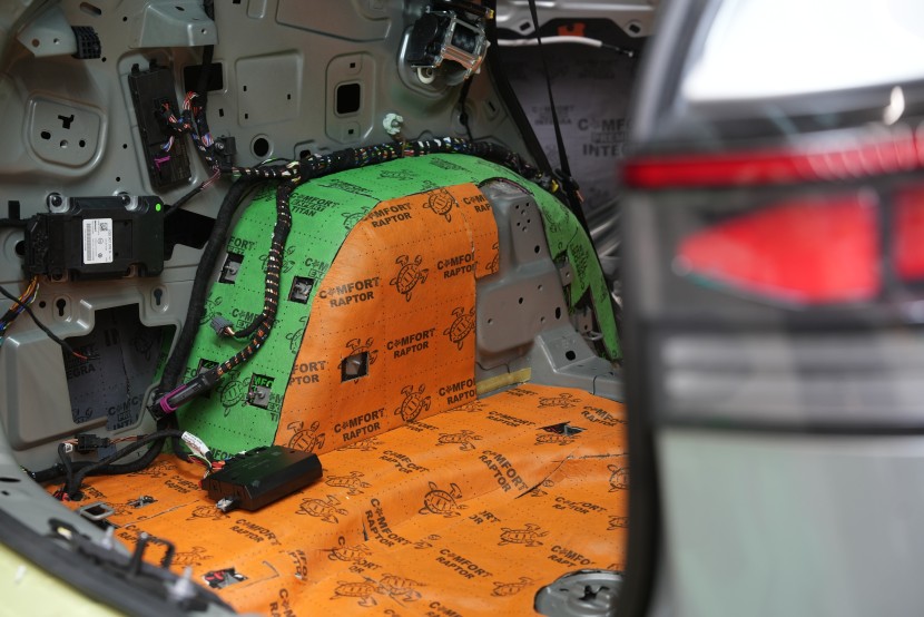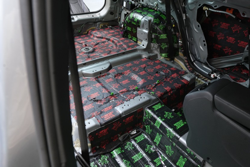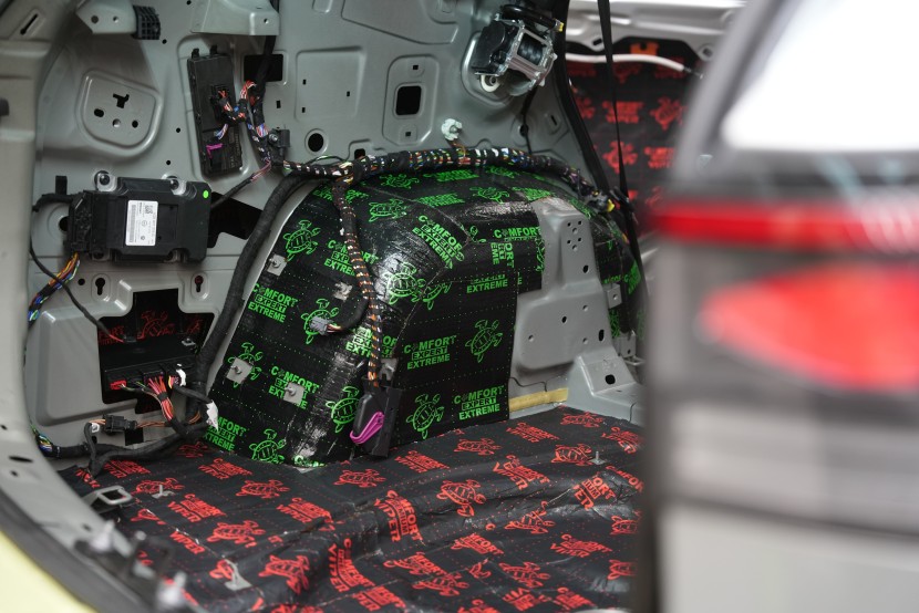 Клиентът затова избра нашия най-ефективен пакет Expert Plus, който комбинира многослойна шумоизолация с използване на висококачествени материали Comfortmat. В рамките на монтажа обработихме пода, покрива, вратите, предните и задните калници, задната част на автомобила и моторното отделение в областта на таблото. Най-голям акцент поставихме на пода и калниците, където използвахме най-мощните антивибрационни и звукоизолационни материали, които ефективно могат да елиминират нискочестотни шумове от гумите и окачването.
