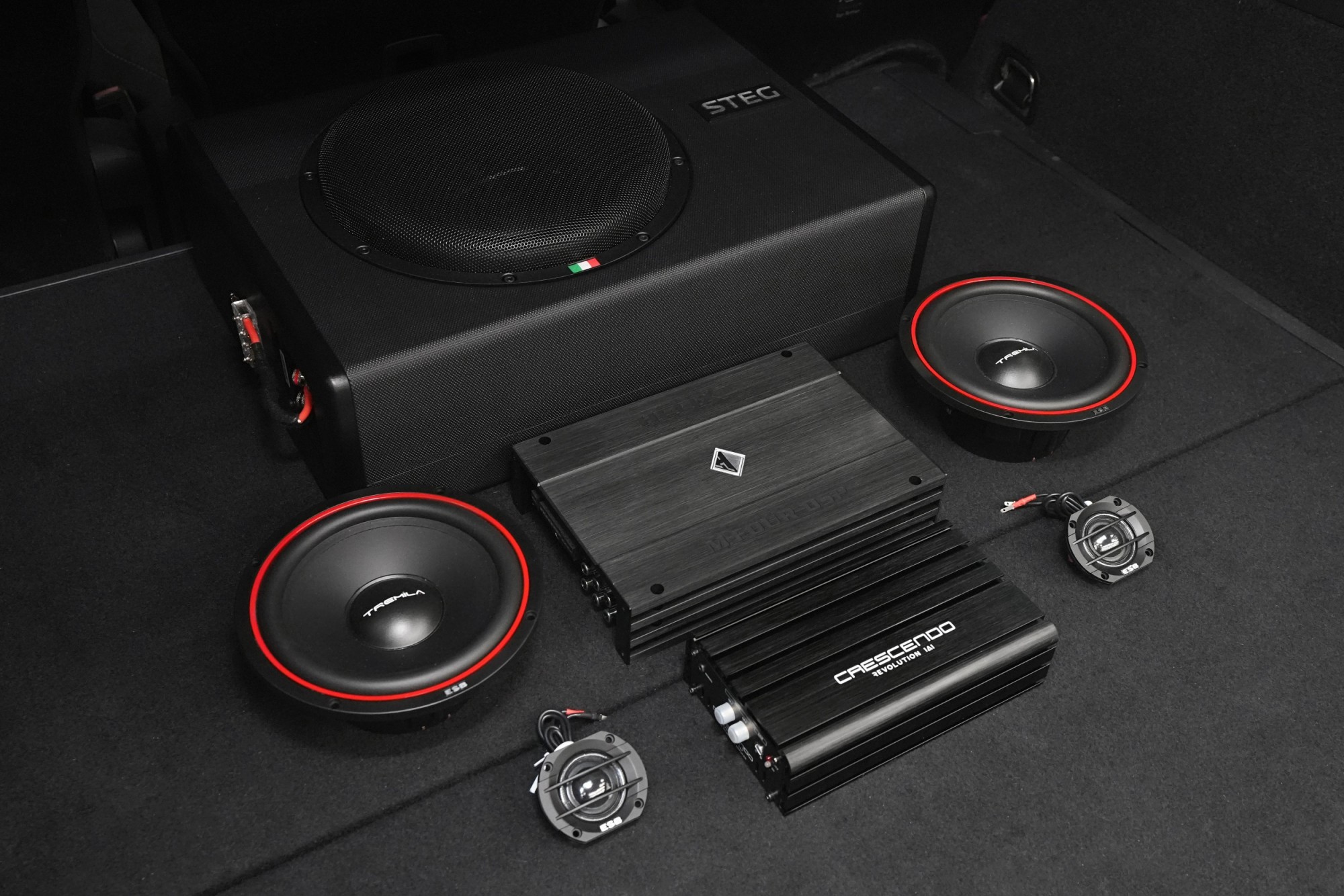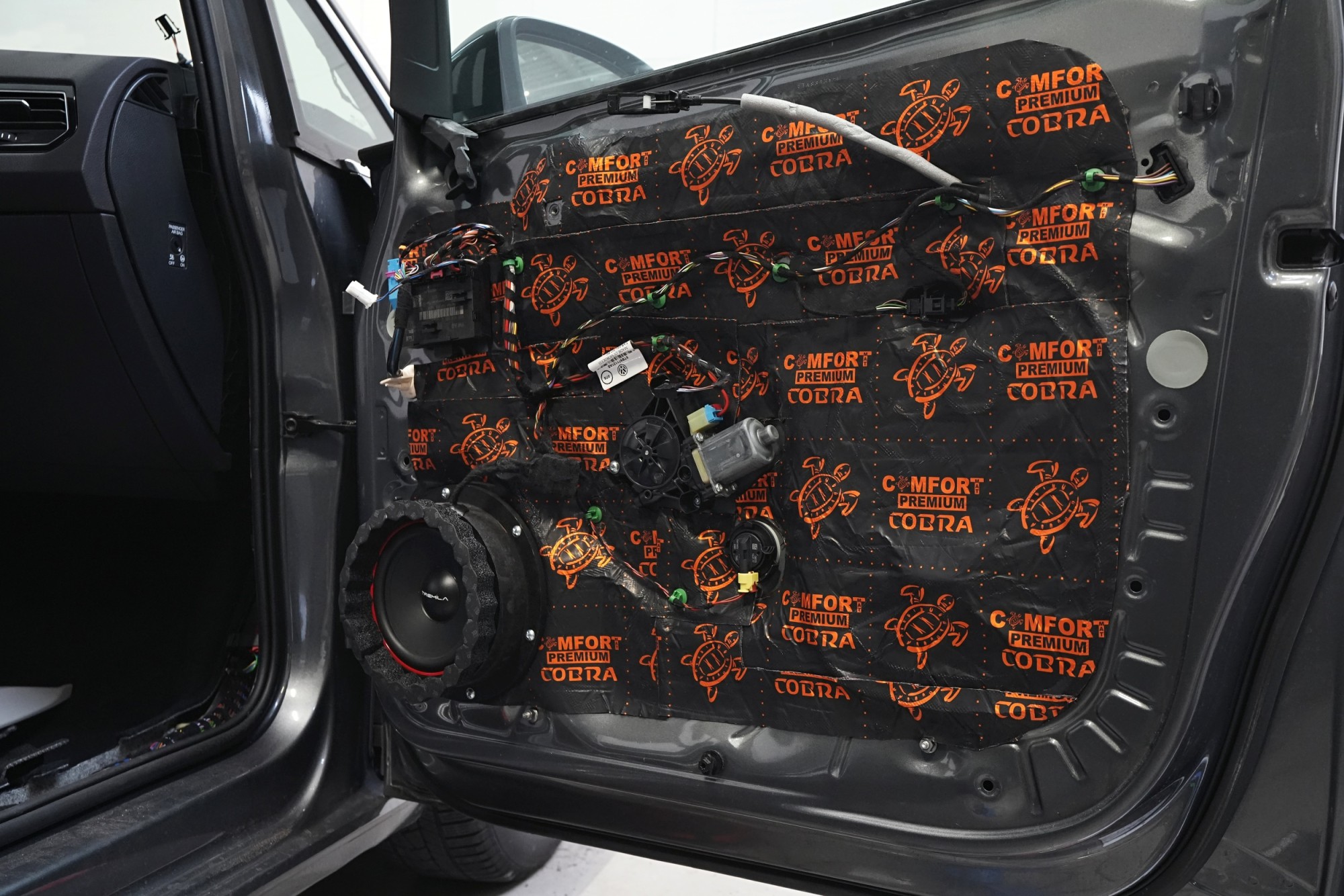 Нова озвучителна система за автомобил Volkswagen Touran. Нашият клиент търсеше изцяло нов аудиосистема с акцент върху високо качество на звука, достатъчно мощност и скрит монтаж без намеса в интериора. Замисленият бюджет около 60 000 Kč не беше пречка за усъвършенствано озвучаване с прецизно настройване на звука на DSP процесор и въпросът оставаше само в избора на най-подходящите компоненти. Както винаги, се стремим изборът да бъде направен по поръчка за нашия клиент, спрямо любимите му музикални жанрове и изисквания за мощност. От говорителите избрахме любимите ни компоненти от италианската ESB audio, конкретно моделната серия Tremila. За цена от 7 000 Kč практически не познаваме говорители с по-качествен и преди всичко жанрово неутрален звук. Говорителите лесно се справят с модерна ритмична или рок музика, но техните предимства ще оцените напълно особено при по-изискани жанрове, включително джаз и инструментална музика. Поради ограниченото пространство в този автомобил решихме да използваме компактни усилватели клас D, конкретно 4-канален усилвател с интегриран DSP процесор от немската фирма Helix, чиито перфектно разработен софтуер предпочитаме при нашите инсталации. За субуфера избрахме моноблок Crescendo, който разполага с извънредна мощност и отличен контрол за предназначения субуфер на италианския производител Steg. И двата усилвателя намериха място под седалките, където не заемат видимо или използваемо пространство. В края на инсталацията идва може би най-важното — измерване на звука с калибриран микрофон в професионален софтуер REW, което позволява след експертна настройка да се адаптира звукът не само към слушателя, но и преди всичко към конкретния автомобил с всички препятствия на това акустично неперфектно средище. Измерените резултати се настройват в програмата на DSP процесора, звукът се допълнително финализира според нашите предпочитания и накрая правим финална настройка с клиента. Резултатът е много качествен звук с прецизна настройка, който ще удовлетвори и по-взискателните слушатели.