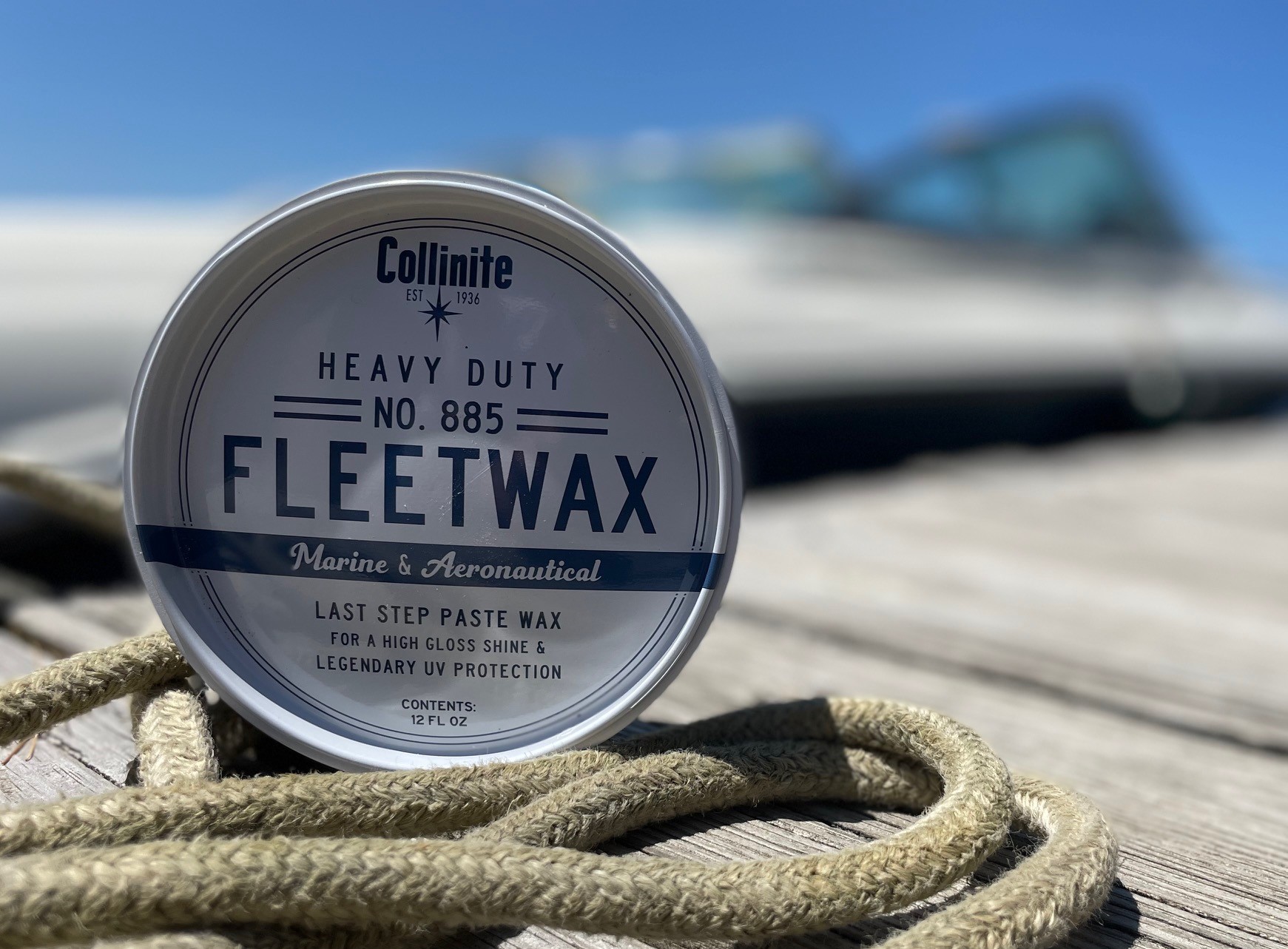 Collinite No. 885 Heavy Duty Fleetwax Paste е изключително стабилен защитен восък, който предпазва боята от вредни влияния като UV лъчи, корозия и др. Оставя след нанасяне висок блясък. Това е восък за всички повърхности – боядисани, метални, повърхности от фибростъкло и други. Не съдържа абразивни частици и е напълно безопасен за горния слой на лака. Collinite Heavy Duty Fleetwax Paste No. 885 се препоръчва за всички плавателни съдове (яхти, моторни лодки, водни скутери и др.) и за самолети.Основни характеристики