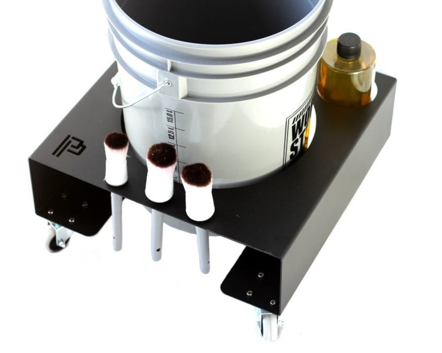 Poka Premium Detailing Bucket Trolley Rinse е масивна детайлинг количка за кофа, 2 бутилки и 3 четки. Количката Poka Premium е идеална за миене на автомобила, значително повишава комфорта при работа и елиминира нуждата от пренасяне на тежка пълна кофа. Количката е изработена от висококачествена галванизирана стомана, покрита с протективен слой прахово боядисване. Несъмнено предимство на количката са специално изработените отвори за кофа, за съхранение на бутилки с химикали и за 3 четки. Конструкцията е много стабилна, предотвратява преобръщане и разлив на вода. Благодарение на отвора за кофа и надписа "RINSE" винаги ще сте сигурни, че тази кофа е за изплакване.