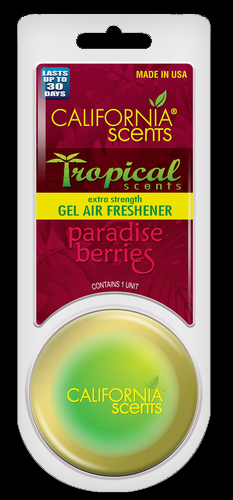 Гелевите освежители Tropical Scents предлагат в малка практична опаковка максимална интензивност на аромата. Всяка кутийка съдържа 90 процента силно концентрирано ароматно масло в твърда форма. То благодарение на специална технология се изпарява равномерно и изпълва пространството с омагьосващ аромат. Освен това съдът е изработен в елегантно златно изпълнение, което в комбинация със сияйните цветове на пълнежа перфектно ще се впише в интериора на Вашия дом, апартамент или офис.