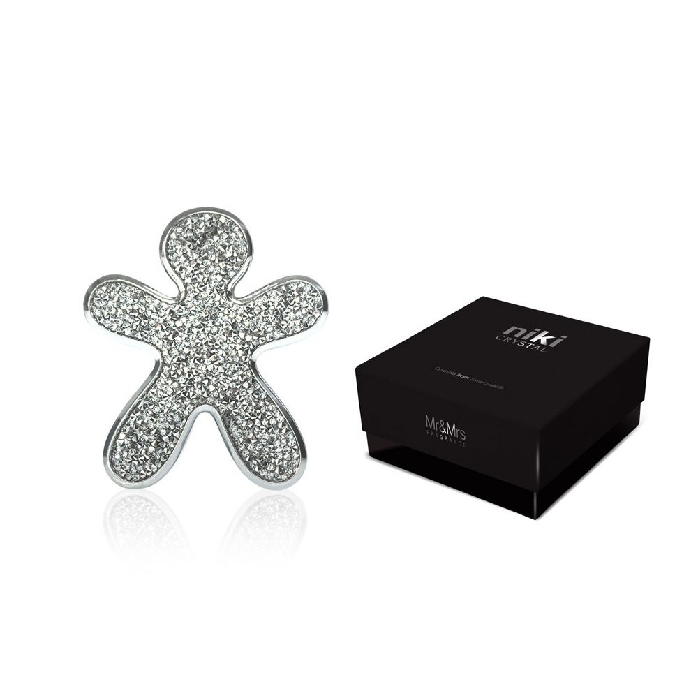 Niki krystal je první autovůní s pravými krystaly Swarovski, která je osázená celkem 160 krystaly. Spolupráce se značkou Swarovski je důsledkem snahy italské společnosti vytvořit exkluzivní produkt a zkombinovat patentovanou technologii společnosti Joy Fragrances s nadčasovou elegancí a světově proslulými krystaly. Vůně Splendido: vrchol - máta, zelené jablko, citron / srdce - tonka boby, pelargonie, ambra / základ - vanilka, cedrové dřevo, vetiver, větvičník.Jak používat Niki Silver Crystal s chromovým okrajem - Splendido