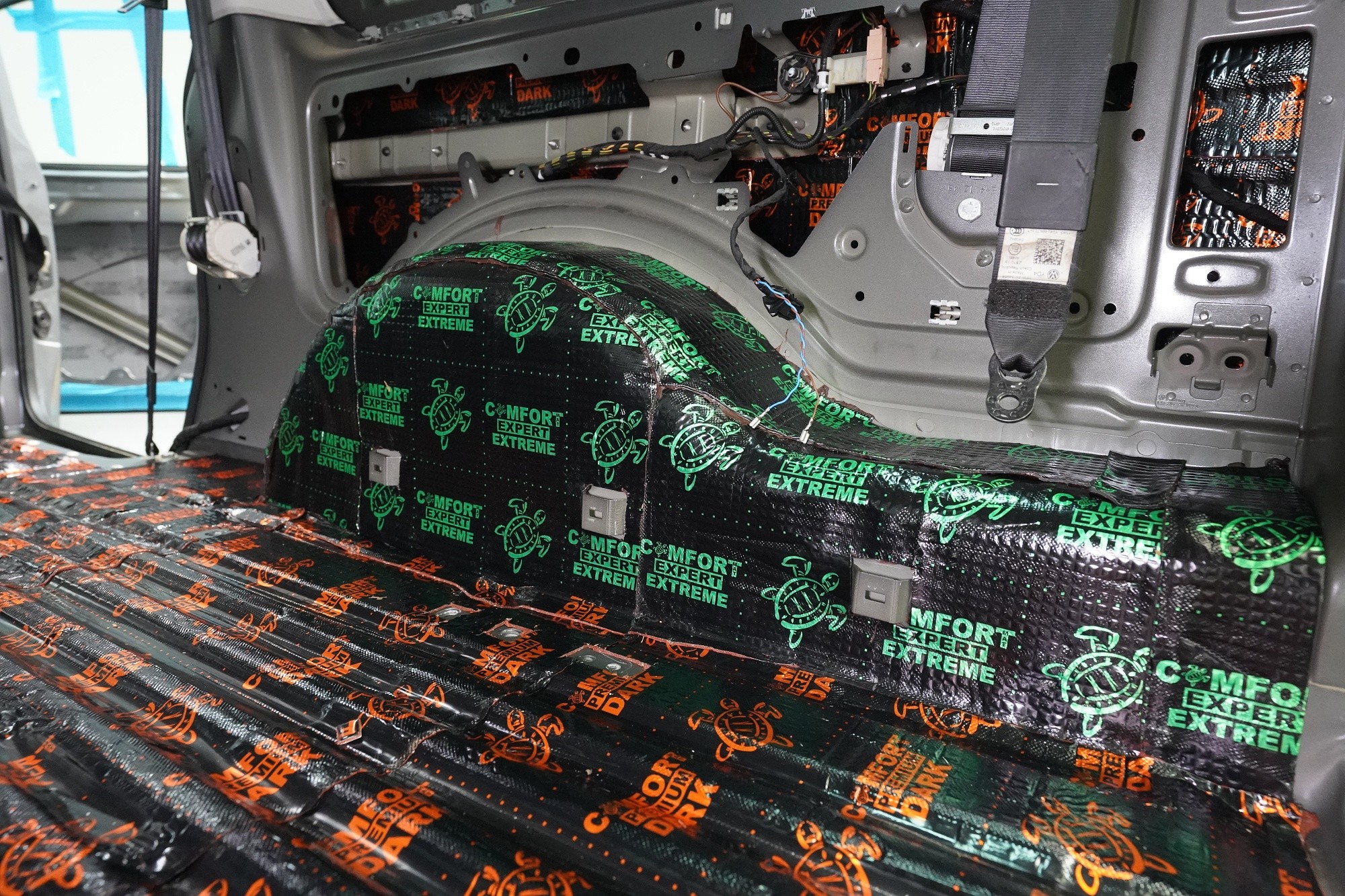 Odhlučnění vozu VW Caddy a náš nejúčinnější program Expert Plus. Také Caddy patří mezi populární užitkové vozy, u kterých se tak nějak zapomnělo na zvukovou izolaci. Holé plechy téměř bez jakékoliv ochrany způsobují silné vibrace a do interiéru snadno proniká hluk snad ze všech oblastí vozu. Tím nejvýraznějším je jako obvykle hluk od pneumatik pronikající zejména přes podlahu a podběhy a díky tvaru karoserie i aerodynamický a okolní silniční hluk. Proč by si i majitel užitkového vozu nemohl dopřát úroveň prémiové třídy? Pojďme to společnými silami napravit. Náš klient se rozhodl rovnou pro náš nejúčinnější balíček Expert Plus, v rámci kterého pracujeme s profesionálními materiály Comfortmat z nejvyšší modelové řady Expert. Zaměřili jsme se tedy na všechny zásadní oblasti vozu, konkrétně přední, zadní a páté dveře, podlahu, zavazadlový prostor, střechu, přední i zadní podběhy z vnitřní strany a kapotu. Na instalaci pracovali zároveň čtyři naši zkušení technici, kteří montáž zvládnou v rámci 1 pracovního dne. Pokud vás zajímá výsledek, tak v rámci balíčku Expert Plus jsme u tohoto vozu schopni dosáhnout snížení hluku až o 5 dB při dálniční rychlosti, což znamená trojnásobné snížení hluku oproti původnímu stavu. Více zajímavých informací o instalaci se dozvíte v naší fotoreportáži.