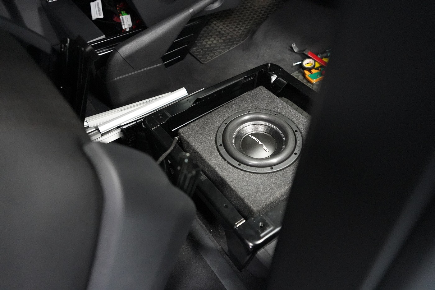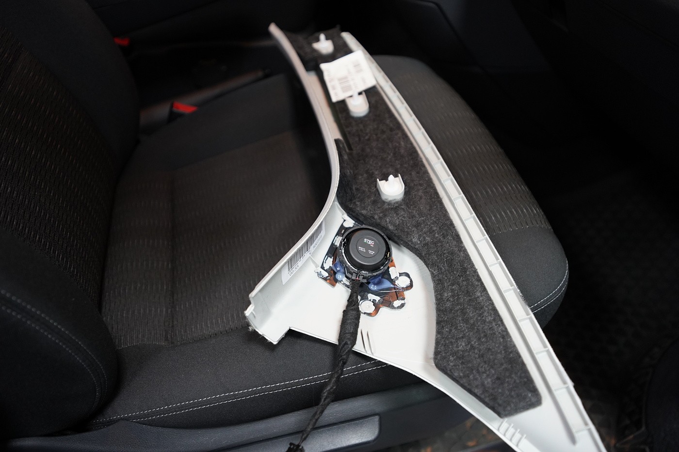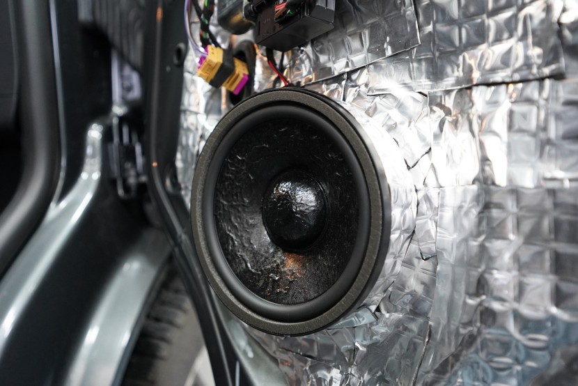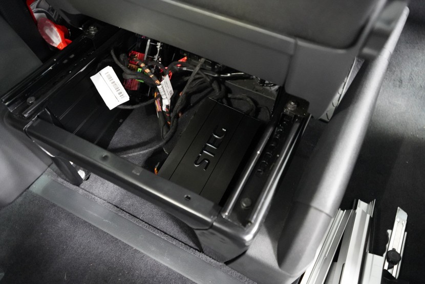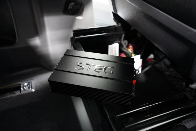Пълна озвучителна система за VW T6 Multivan предимно от компоненти на италианския производител Steg. Запазихме оригиналния размер на говорителите във вратите отпред, конкретно 180 mm, благодарение на OEM компонентните говорители Steg, които пасват точно в този автомобил. Освен това те имат много добър звук и солидна динамика. За максимално използване на тези висококачествени говорители ги свързахме към четириканален усилвател от същата марка, който осигурява мощност и за мощния субуфер Gladen. Той беше поставен под седалката на пътника, така че не ограничава мястото в интериора на автомобила. Задните фабрични говорители заменихме също с коаксиални говорители Steg.