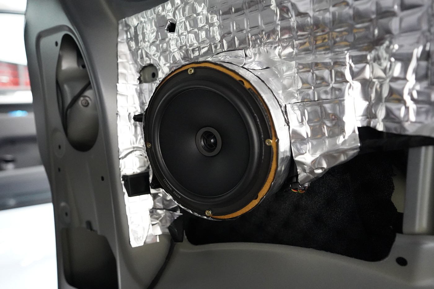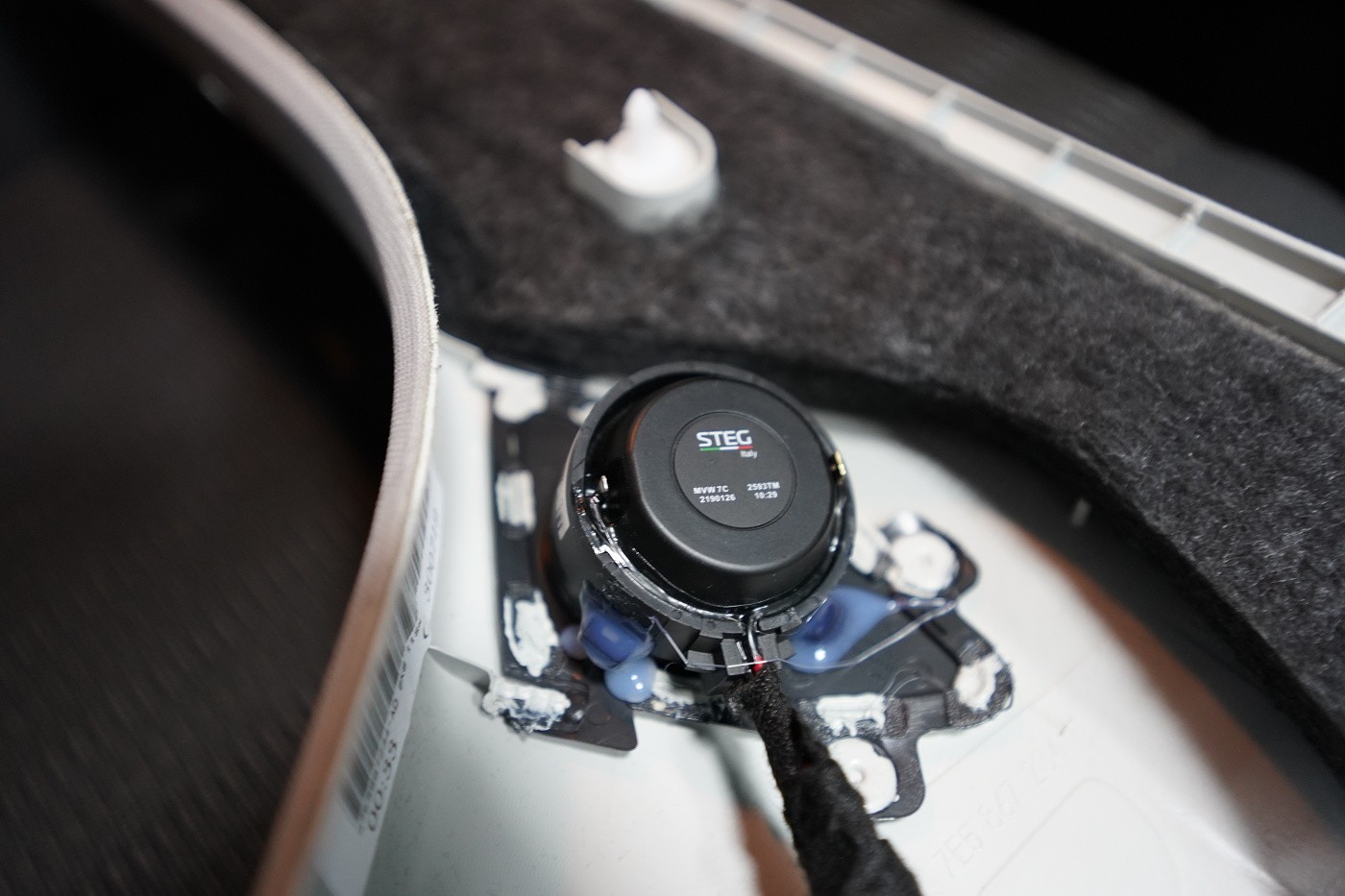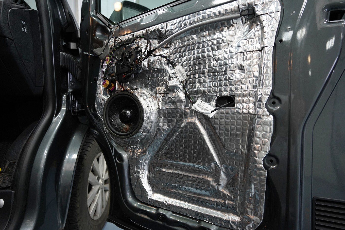 Пълна озвучителна система за VW T6 Multivan предимно от компоненти на италианския производител Steg. Запазихме оригиналния размер на говорителите във вратите отпред, конкретно 180 mm, благодарение на OEM компонентните говорители Steg, които пасват точно в този автомобил. Освен това те имат много добър звук и солидна динамика. За максимално използване на тези висококачествени говорители ги свързахме към четириканален усилвател от същата марка, който осигурява мощност и за мощния субуфер Gladen. Той беше поставен под седалката на пътника, така че не ограничава мястото в интериора на автомобила. Задните фабрични говорители заменихме също с коаксиални говорители Steg.