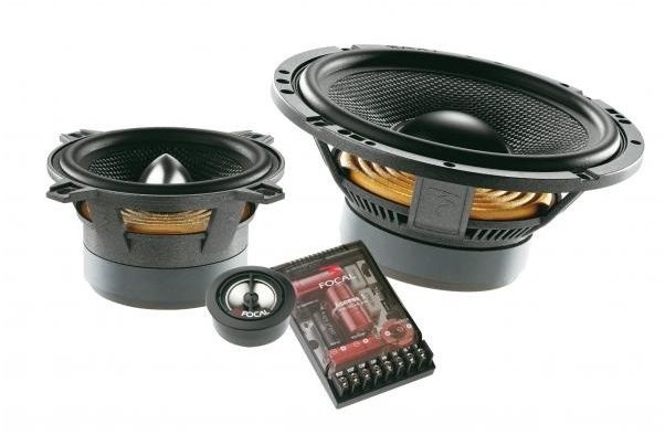 | Тип на високоговорителитеКоаксиални високоговорители: Коаксиалните високоговорители се характеризират с конструкция, наречена всичко в едно. Високочестотният и среднобасовият говорител са в един и същ кош. Предимството е по-лесен монтаж, но поради свързването или близостта на честотните диапазони в един говорител обикновено се понижава качеството на звука. Обикновено в центъра на среднобасовия говорител се намира високочестотният говорител, чиито звукова бобина работи във втората въздушна междина на общия магнитен кръг. Коаксиален говорител с три честотни диапазона се състои от среднобасов говорител, отпред на специален носач е поставен средночестотният говорител и отделен високочестотен. Компонентни високоговорители: Компонентните високоговорители се отличават с разделянето на отделни честотни диапазони: високочестотен + среднобасов + евентуално басов диапазон. Отделните говорители могат да бъдат разположени напълно отделно, което води до по-добро звуково и акустично представяне. В огромното мнозинство от случаите при компонентните високоговорители се доставя и външна кросоувърна мрежа, която разделя високите, средните/среднобасовите и при системи с три честотни диапазона и басовите честоти, както и позволява настройване на нивото в децибели на високочестотния говорител (напр. +2 dB, 0 dB, -2 dB), стръмността (напр. 6 dB/октава, 12 dB/октава) или активно/bi-amp свързване. | компонентни 3-пътни |