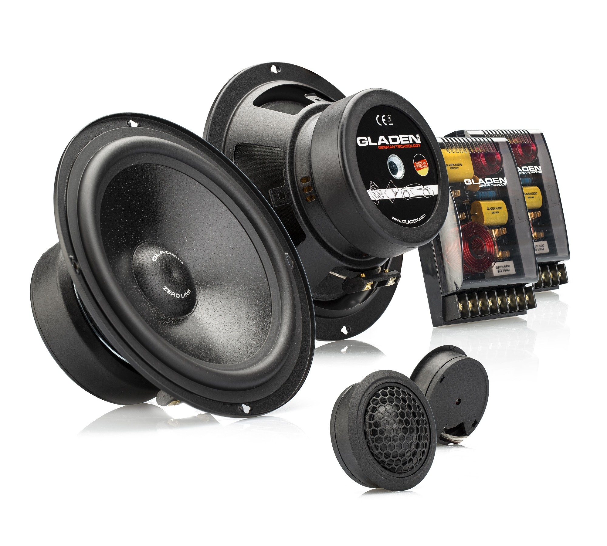 Серията Zero представлява входната врата към света на звуковото качество на компанията Gladen. Всички компоненти от тази серия са ръчно изработени и сглобявани в Германия, което гарантира първокласна изработка. Немската прецизност се проявява във всеки детайл на високоговорителите от серията Zero - диафрагма от втвърдена хартия с частици фин пясък, шелкови високочестотни говорители с дизайнерска шестоъгълна решетка или здрав магнит гарантират не само напреднала звукова репродукция, но и висока мощност. Въпреки това високоговорителите от серията Zero могат да бъдат свързани към усилвател с ниска мощност или дори към фабрично или следпродажбено автомобилно радио. Това е възможно благодарение на оптимизирана ефективност, висока чувствителност и намален импеданс до 3 ома. За оптимална звукова репродукция помага и честотният кросоувър с широки възможности за настройка (не важи за версията Active). Високоговорителите Gladen от серия Zero ще ви впечатлят във всяко отношение.