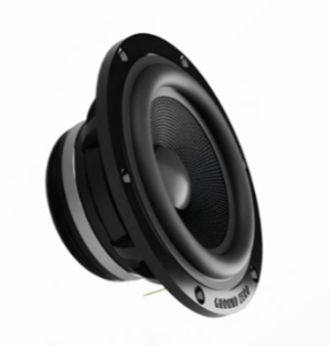 | Тип на високоговорителитеКоаксиални високоговорители: Коаксиалните високоговорители се характеризират с конструкция, наречена всичко в едно. Високочестотният и среднобасовият говорител са в един и същ кош. Предимството е по-лесен монтаж, но поради свързването или близостта на честотните диапазони в един говорител обикновено се понижава качеството на звука. Обикновено в центъра на среднобасовия говорител се намира високочестотният говорител, чиито звукова бобина работи във втората въздушна междина на общия магнитен кръг. Коаксиален говорител с три честотни диапазона се състои от среднобасов говорител, отпред на специален носач е поставен средночестотният говорител и отделен високочестотен. Компонентни високоговорители: Компонентните високоговорители се отличават с разделянето на отделни честотни диапазони: високочестотен + среднобасов + евентуално басов диапазон. Отделните говорители могат да бъдат разположени напълно отделно, което води до по-добро звуково и акустично представяне. В огромното мнозинство от случаите при компонентните високоговорители се доставя и външна кросоувърна мрежа, която разделя високите, средните/среднобасовите и при системи с три честотни диапазона и басовите честоти, както и позволява настройване на нивото в децибели на високочестотния говорител (напр. +2 dB, 0 dB, -2 dB), стръмността (напр. 6 dB/октава, 12 dB/октава) или активно/bi-amp свързване. | Средночестотни |