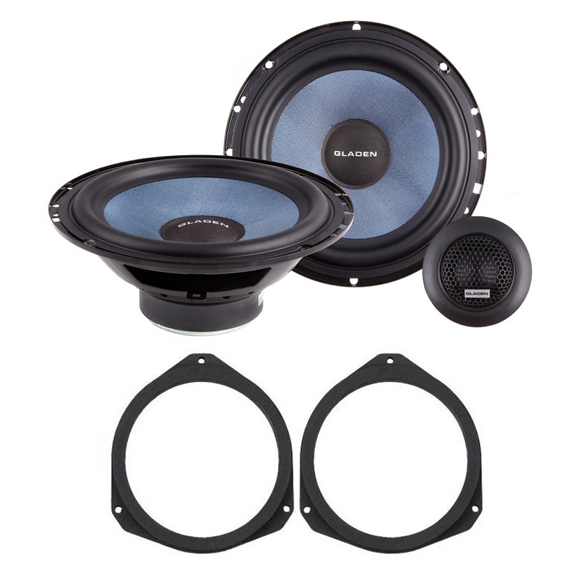 Високоговорители предназначени за подобряване на настоящата звукова система на автомобил Fiat Grande Punto, Punto Evo, Punto. Този комплект се отличава с качествен звук, изработка и лесна инсталация без необходимост от намеса в интериора на автомобила. В комплекта са включени следните продукти:- Компонентни високоговорители Gladen Alpha 165 G2 за предните врати.