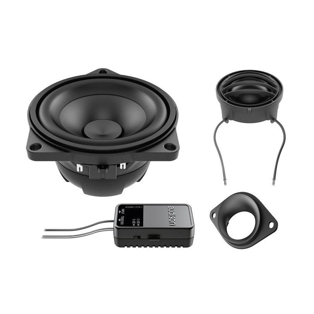 Говорители, предназначени за подобрение на озвучаването на автомобила BMW 1 (E81, E82, E87, E88) от 2004 до 2013 г. Този комплект говорители се отличава с идентична форма и размер като заводските говорители на BMW, затова инсталацията им е без никаква намеса в интериора или електроинсталацията на автомобила. Говорителите предлагат отличен звук, изработка и чувствителност и са подходящи за свързване към заводското основно устройство без външен усилвател. В комплекта са включени следните продукти:- Компонентни говорители Audison APBMW K4M за задния подлакътник.