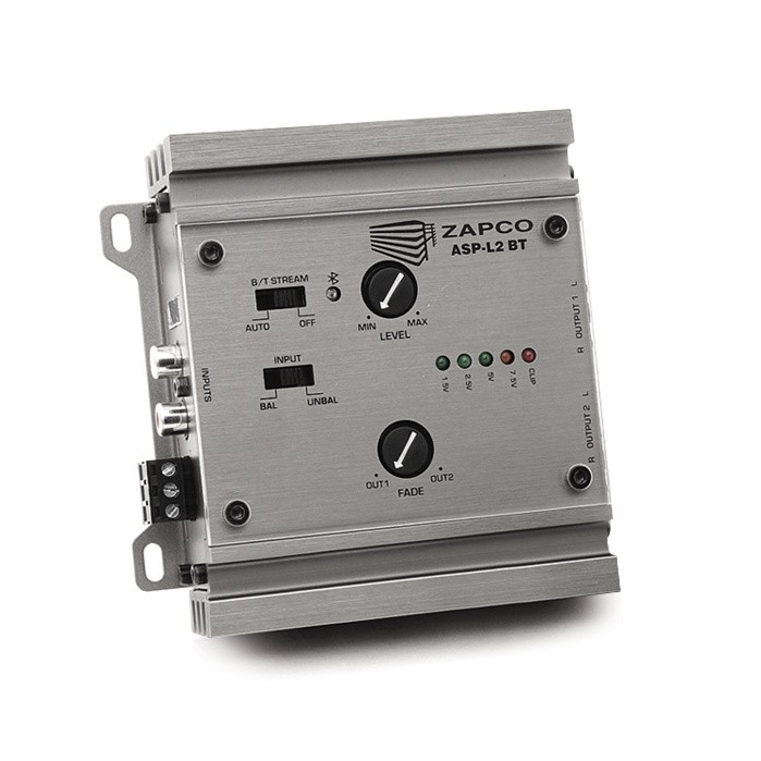 Zapco ASP-L2 BT не е просто удивителен 9,5V RMS линеен драйвер. Това е и Bluetooth вход за вашата аудио система. L2 BT се доставя и с бордово дистанционно управление за ниво, така че можете да настроите нивото на вашето Bluetooth устройство и нивото на вашата основна глава и да използвате дистанционното на L2 BT като контрол на силата на звука на системата. Нека отидем още една стъпка по-далеч. Ако повечето от слушането ви е от iPod, MP3 плейър или друго Bluetooth устройство, защо ви е основна глава? Наистина, когато имате линейния драйвер ASP-L2 BT, имате Bluetooth вход, линеен драйвер и контрол на силата на звука. Основната глава така става опционален аксесоар! Не се нуждаете от основна глава, ако не искате. Ако имате мотор, лодка, класическа кола, хот род, ATV или каравана, вероятно няма да искате да инсталирате основна глава в превозното средство. ASP-L2.BT е точно това, от което се нуждаете.