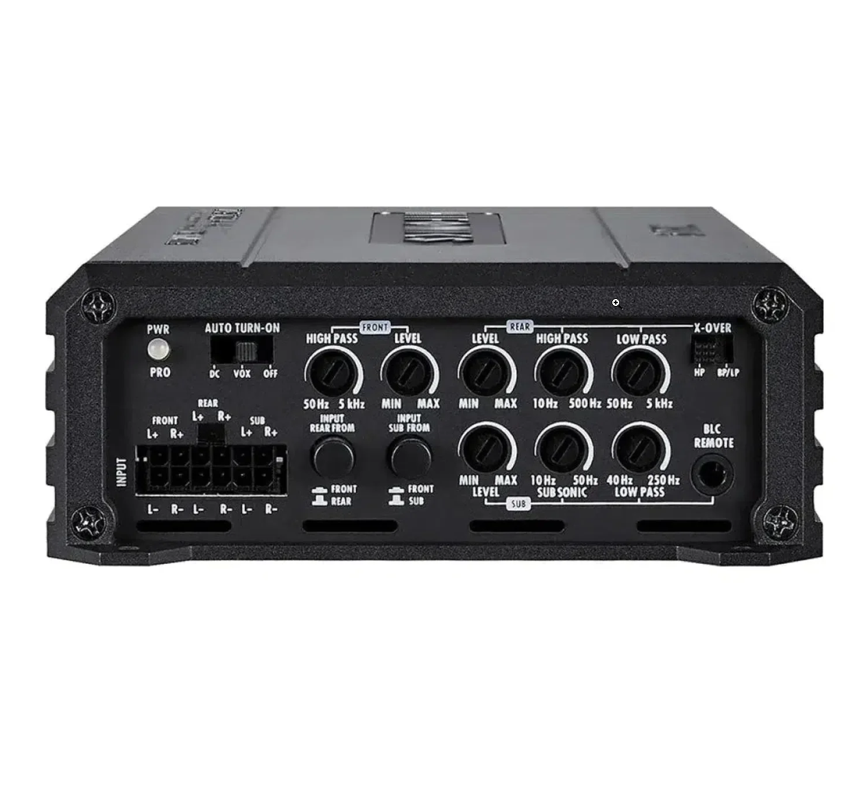 | Дистанционно управление, включено в комплектаНякои модели усилватели имат в комплекта и кабелни дистанционни управления, които от едната страна се включват в усилвателя, а от другата имате потенциометър, който можете да поставите където пожелаете в кабината. Обичайното място за поставяне на дистанционното е под волана. Предимството е регулирането на мощността, съответно на силата на звука, в зависимост от условията на шофиране и настроението на пътниците в автомобила. | Да |