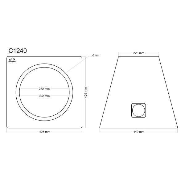 | Размер на отвора за субуферОтвор за съответната диаметрална категория субуфери. За 300 mm субуфер отворът обикновено е около 28,3 см. Монтажните диаметри на субуферите обикновено са стандартизирани, така че няма нужда от промени. | 30 см (12\") |