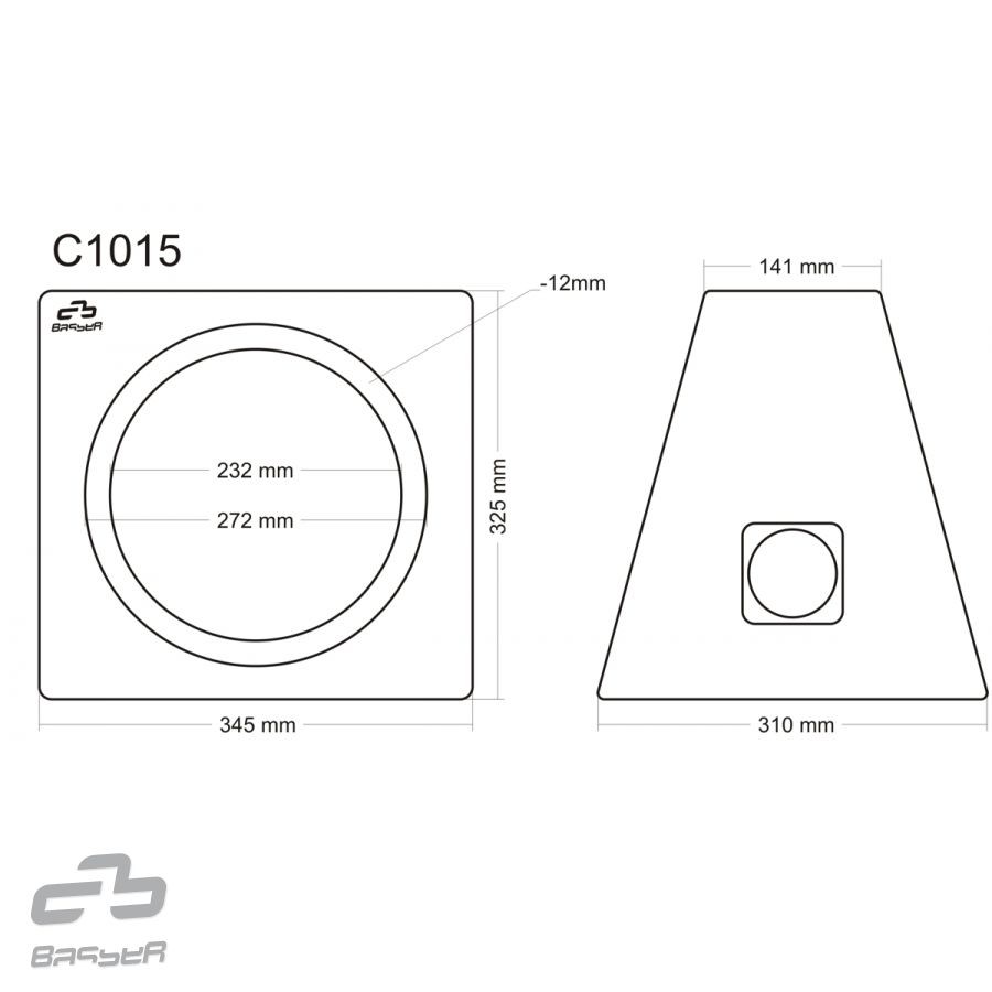 | Размер на отвора за субуферОтвор за съответната диаметрална категория субуфери. За 300 mm субуфер отворът обикновено е около 28,3 см. Монтажните диаметри на субуферите обикновено са стандартизирани, така че няма нужда от промени. | 25 см (10\") |