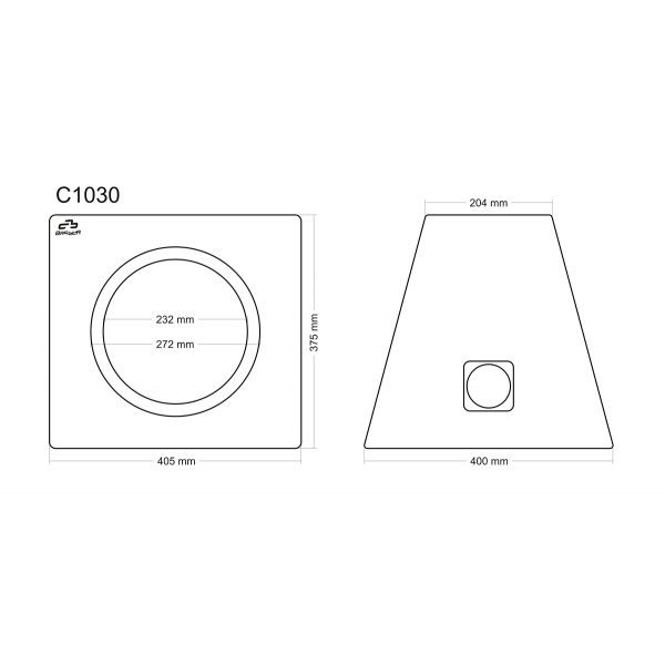 | Размер на отвора за субуферОтвор за съответната диаметрална категория субуфери. За 300 mm субуфер отворът обикновено е около 28,3 см. Монтажните диаметри на субуферите обикновено са стандартизирани, така че няма нужда от промени. | 25 cm (10\") |