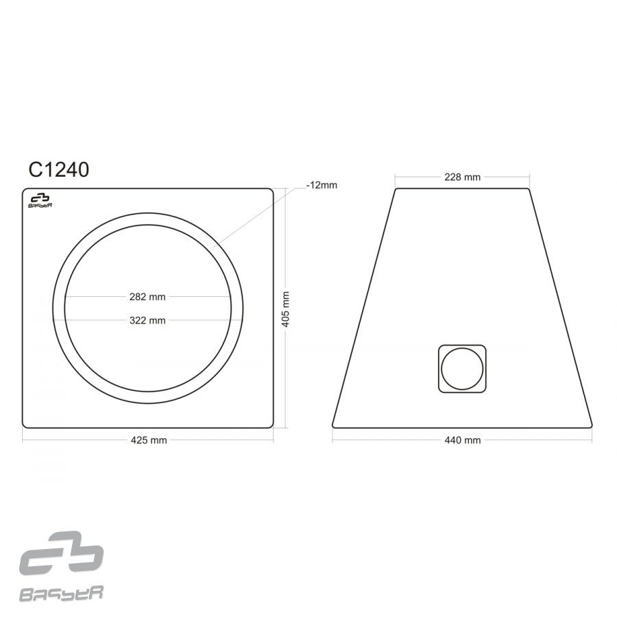 | Размер на отвора за субуферОтвор за съответната диаметрална категория субуфери. За 300 mm субуфер отворът обикновено е около 28,3 см. Монтажните диаметри на субуферите обикновено са стандартизирани, така че няма нужда от промени. | 30 cm (12\") |