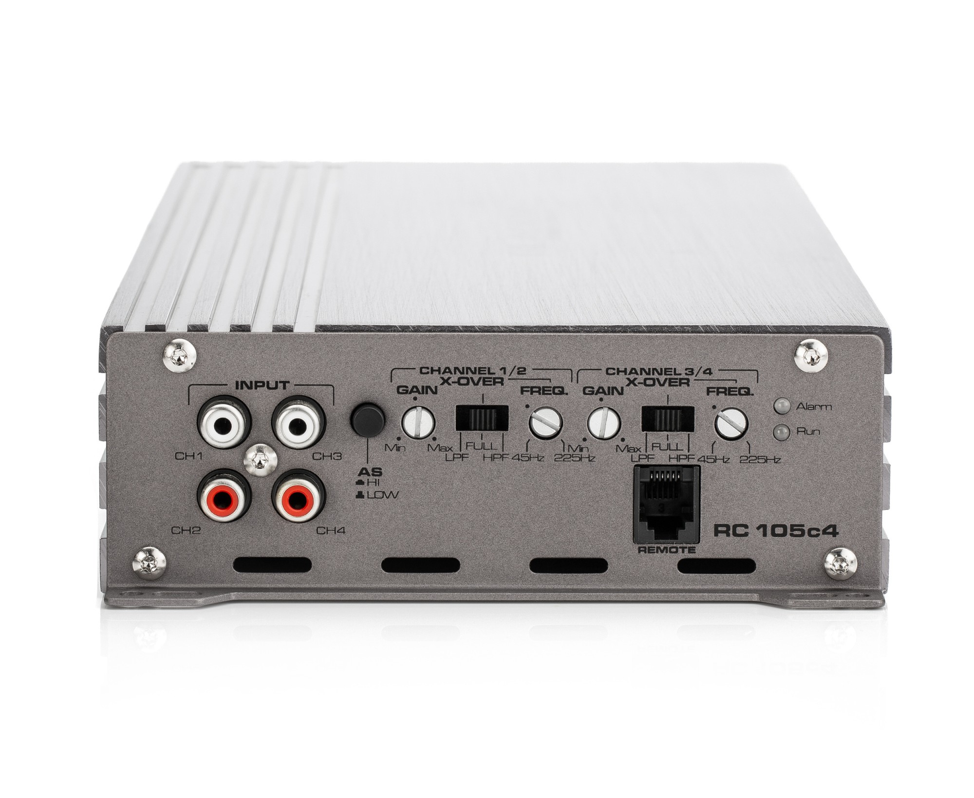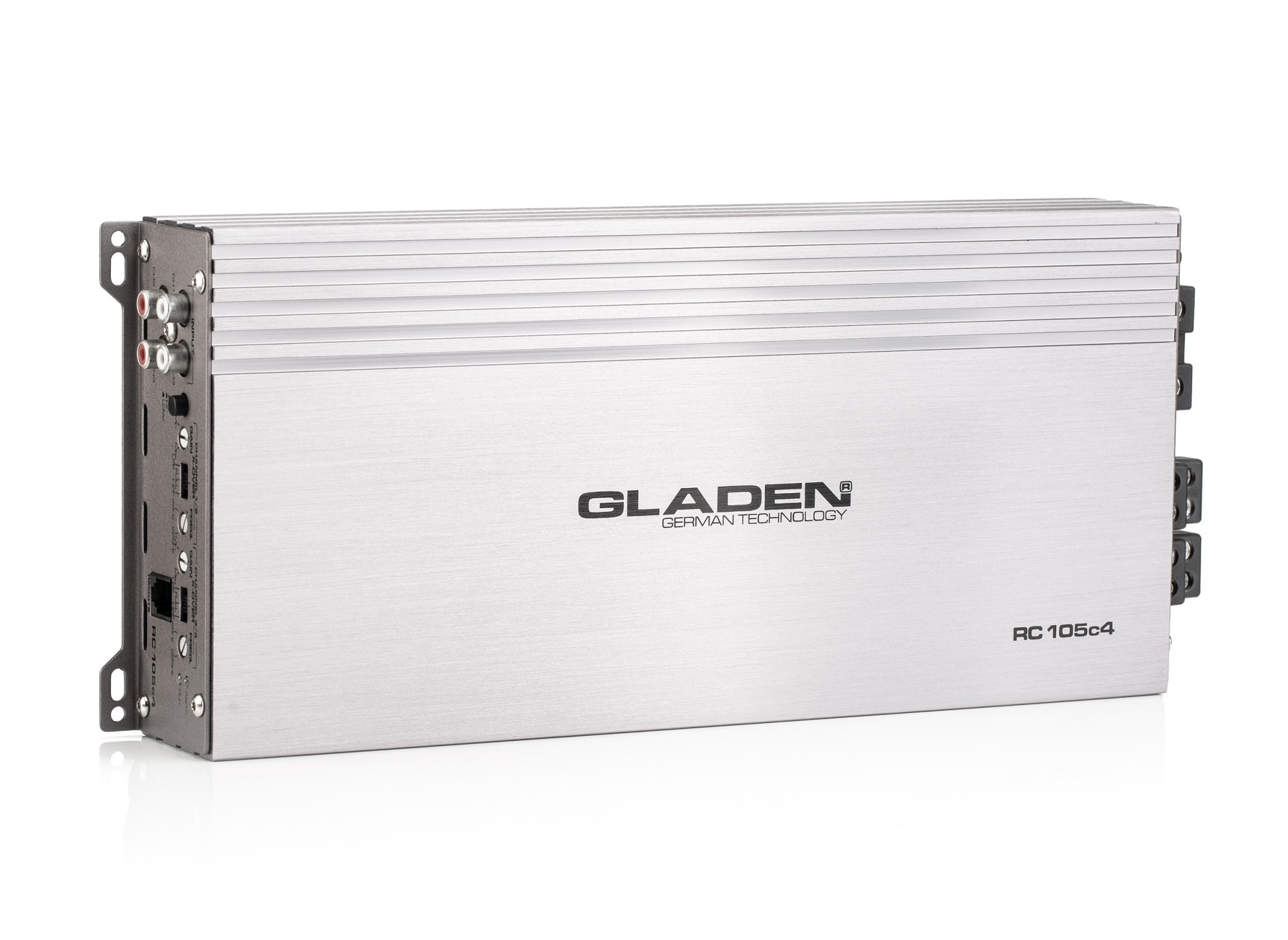 Качественият усилвател е основата на всяка автомобилна hi‑fi система. Той е способен да предава музиката към високоговорителите с висока и незасегната динамика. Усилвателите от серията RC са разработени и произведени на същото високо ниво като всички продукти на Gladen. С практично оборудване, като честотен делител или входове за високонапрежен сигнал, RC усилвателите на Gladen представляват важен основен елемент от вашата автомобилна hifi система. Мощността 4 x 105 W RMS е достатъчна за повечето aftermarket високоговорители, които обикновено се монтират в автомобили. Подобрената версия G2.Основни характеристики на усилвателя Gladen RC 105c4 G2