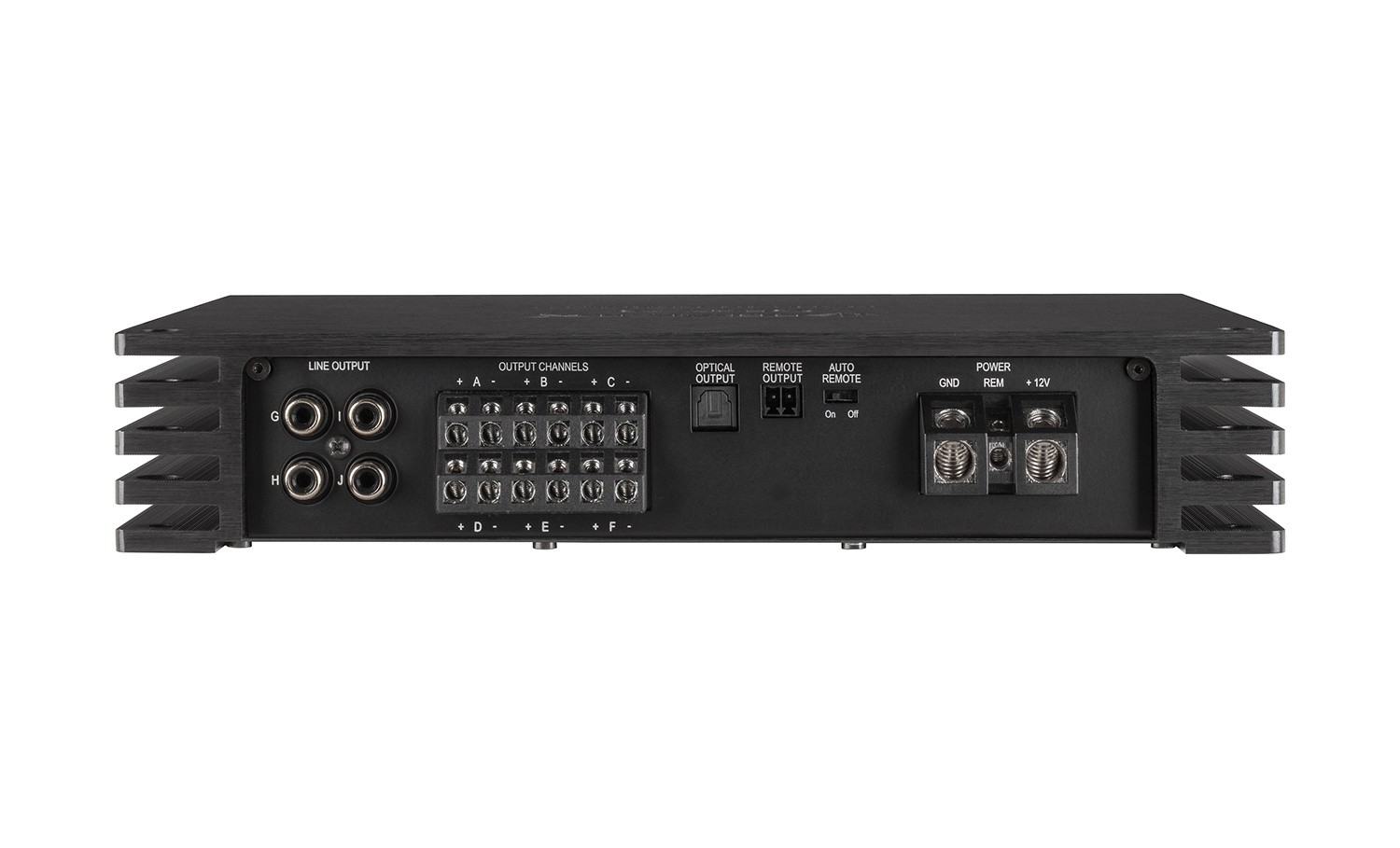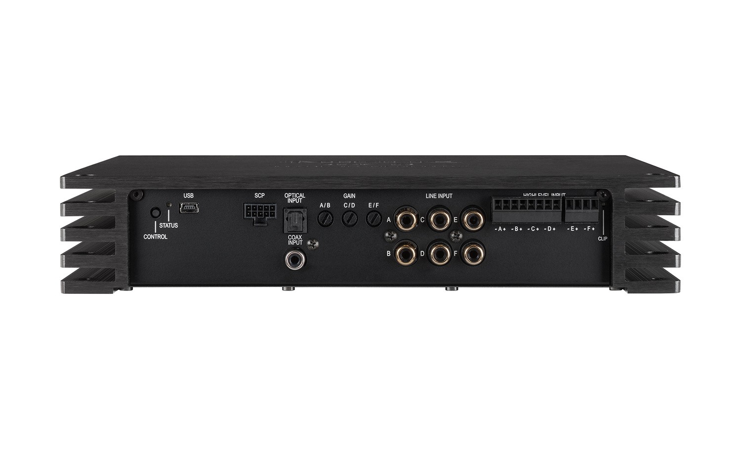 - Високопроизводителен 6-канален вход с високо ниво с входна чувствителност до 32 V RMS и схема ADEP.3.